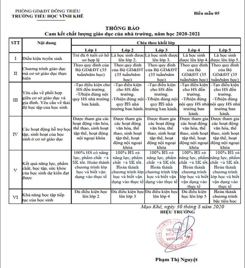 Công khai hóa về Nhà trường