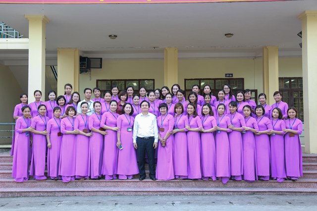 Xúc động trước tình cảm của Bộ trưởng, đồng Lê Thị Thu- Hiệu trưởng nhà bày tỏ niềm vinh dự và tự hào khi được Bộ trưởng Bộ GD&ĐT Phùng Xuân Nhạ và các thành viên đoàn công tác đến thăm.