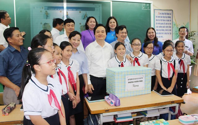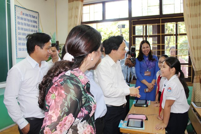 BỘ TRƯỞNG BỘ GIÁO DỤC CÙNG ĐOÀN CÔNG TÁC ĐẾN THĂM VÀ LÀM VIỆC TẠI TRƯỜNG TIỂU HỌC VĨNH KHÊ