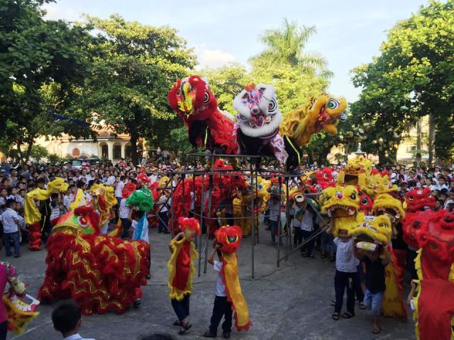 Cổ vũ, tán thưởng nhiều nhất vần là màn múa kỳ lân truyền thống của dân tộc. Các bạn học sinh cũng trổ tài lên tham gia múa xung quanh, điêu luyện, đẹp mắt không kém phần.