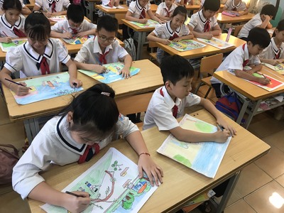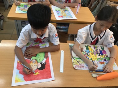 Chi đội 4D1 vẽ tranh "Bác Hồ với thiếu nhi - Thiếu nhi với Bác Hồ".