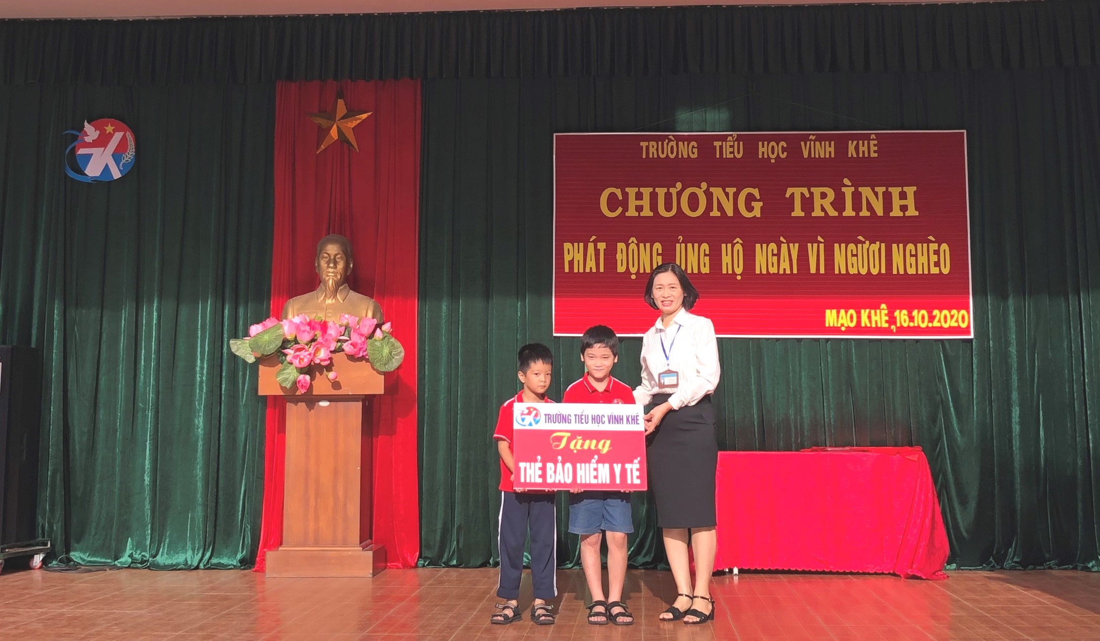 Để tiếp tục phát huy tinh thần đó, sáng ngày 16/10 Chi hội Chữ thập đỏ, Liên đội trường Tiểu học Vĩnh Khê đã trao 28 suất quà, 02 suất hỗ trợ Bảo hiểm y tế cho các em học sinh có hoàn cảnh khó khăn trong nhà trường, đồng thời phát động phong trào ủng hộ tới toàn thể cán bộ, giáo viên, nhân viên, học sinh với số tiền: 14.898.000 đồng.