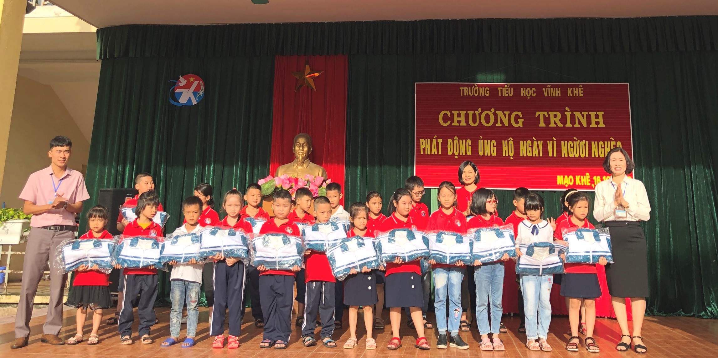 Hưởng ứng cuộc vận động "Ngày vì người nghèo 17-10" sáng ngày 16/10, Chi hội Chữ thập đỏ, Liên đội trường Tiểu học Vĩnh Khê phát động phong trào ủng hộ và trao quà " Ngày vì người nghèo" tới toàn thể cán bộ, giáo viên, nhân viên và học sinh trong nhà trường.
