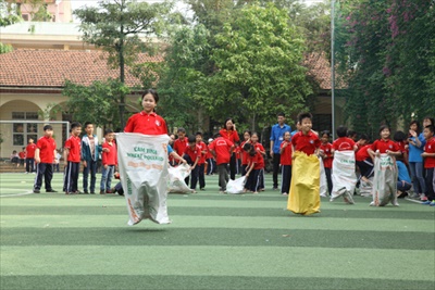 Đồng thời các bạn học sinh trong toàn trường được tham gia vào các hoạt động bổ ích, ý nghĩa như: biểu diễn văn nghệ, các trò chơi dân gian, trò chơi vận động vui tươi, năng động, khỏe khoắn như: nhảy bao bố, kéo co, đá bóng…