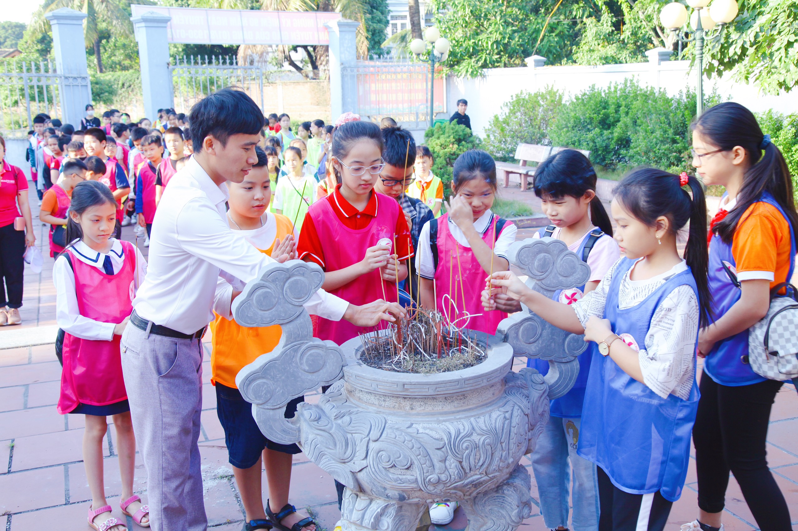 Thầy và trò nhà trường thắp hương tưởng niệm tại khu di tích