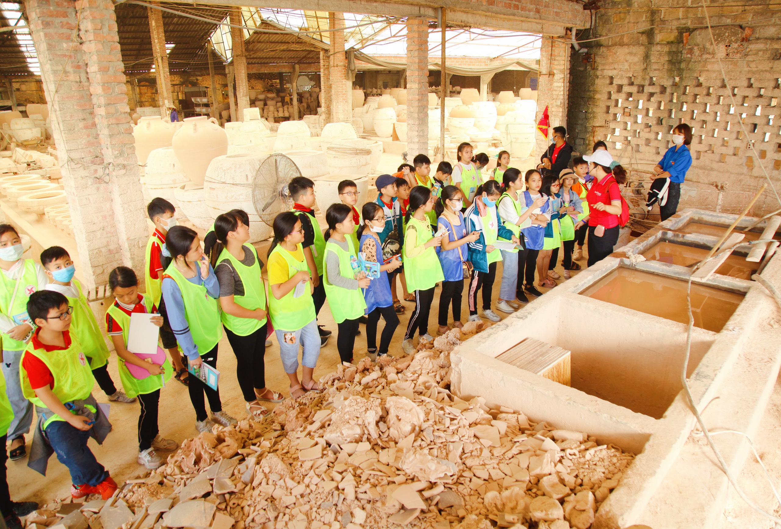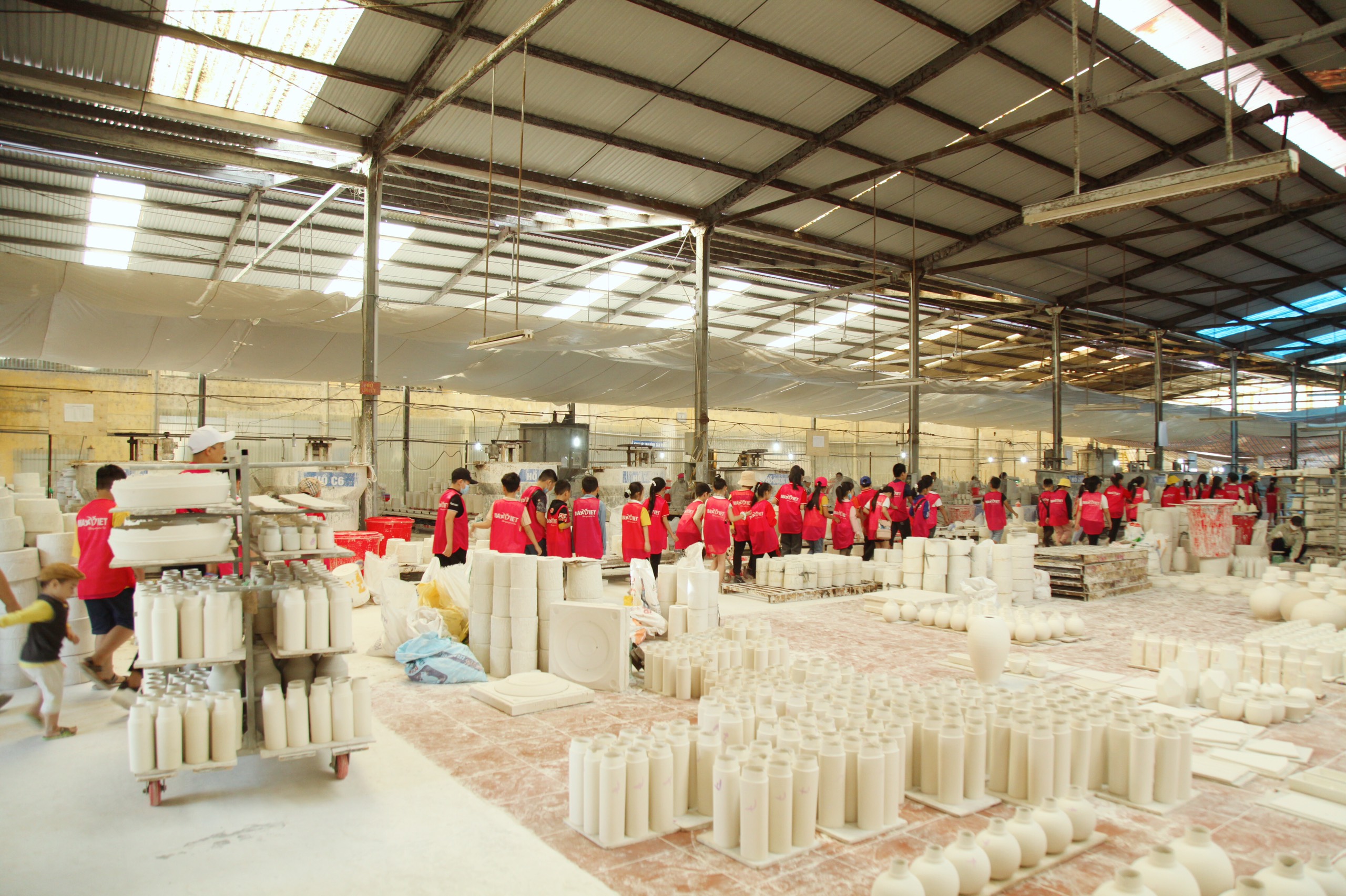 HS tham gia tìm hiểu, trải nghiệm tại khu sản xuất gốm công ty gốm sứ Quang Vinh