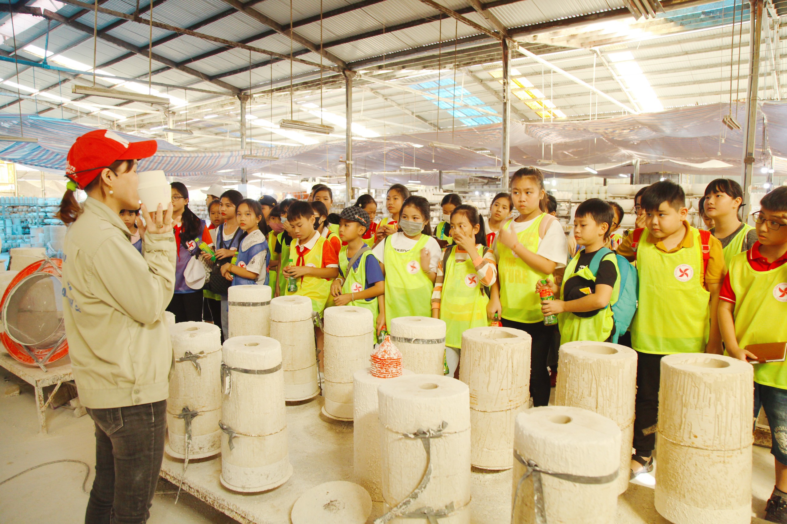 Các em học sinh đã được đến tham quan một số cơ sở sản xuất gốm thủ công truyền thống tại Làng gốm Vĩnh Hồng và công ty Gốm sứ Quang Vinh, Mạo Khê, Đông Triều, Quảng Ninh. Dưới sự hướng dẫn, giới thiệu của các nghệ nhân, các em được tìm hiểu chi tiết quy trình sản xuất, hoàn thiện sản phẩm gốm, qua đó lồng ghép các kiến thức STEM về lĩnh vực Vật lý, Hoá học, nghệ thuật lý thú. Đặc biệt, các em còn được tự tay trải nghiệm công đoạn tạo hình và trang trí sản phẩm gốm mang đậm nét dấu ấn cá nhân.