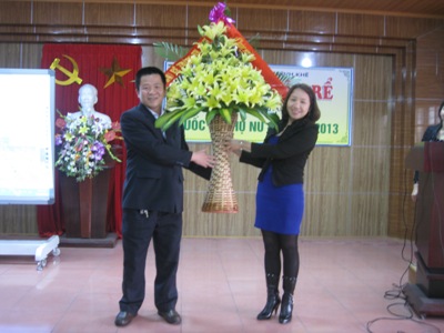Đ/ c lưu Xuân Giới - Đại diện các phu quân tặng hoa Ban chấp hành Công đoàn.