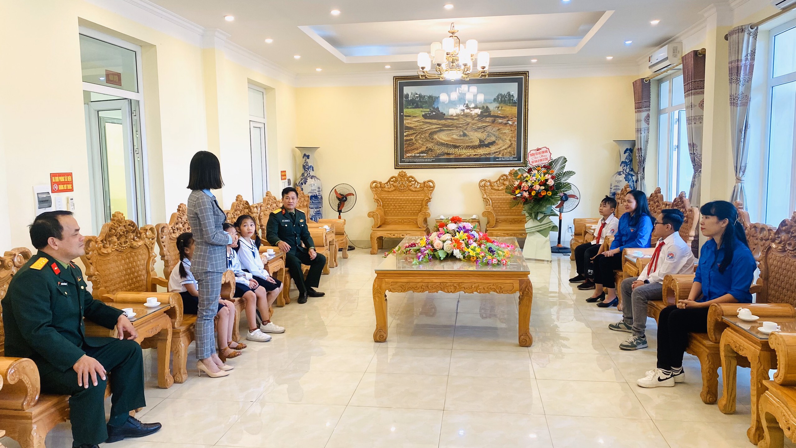 Đoàn cán bộ, giáo viên, học sinh trường Tiểu học Vĩnh Khê tới thăm và chúc mừng Lữ đoàn Tăng Thiết Giáp 405 .