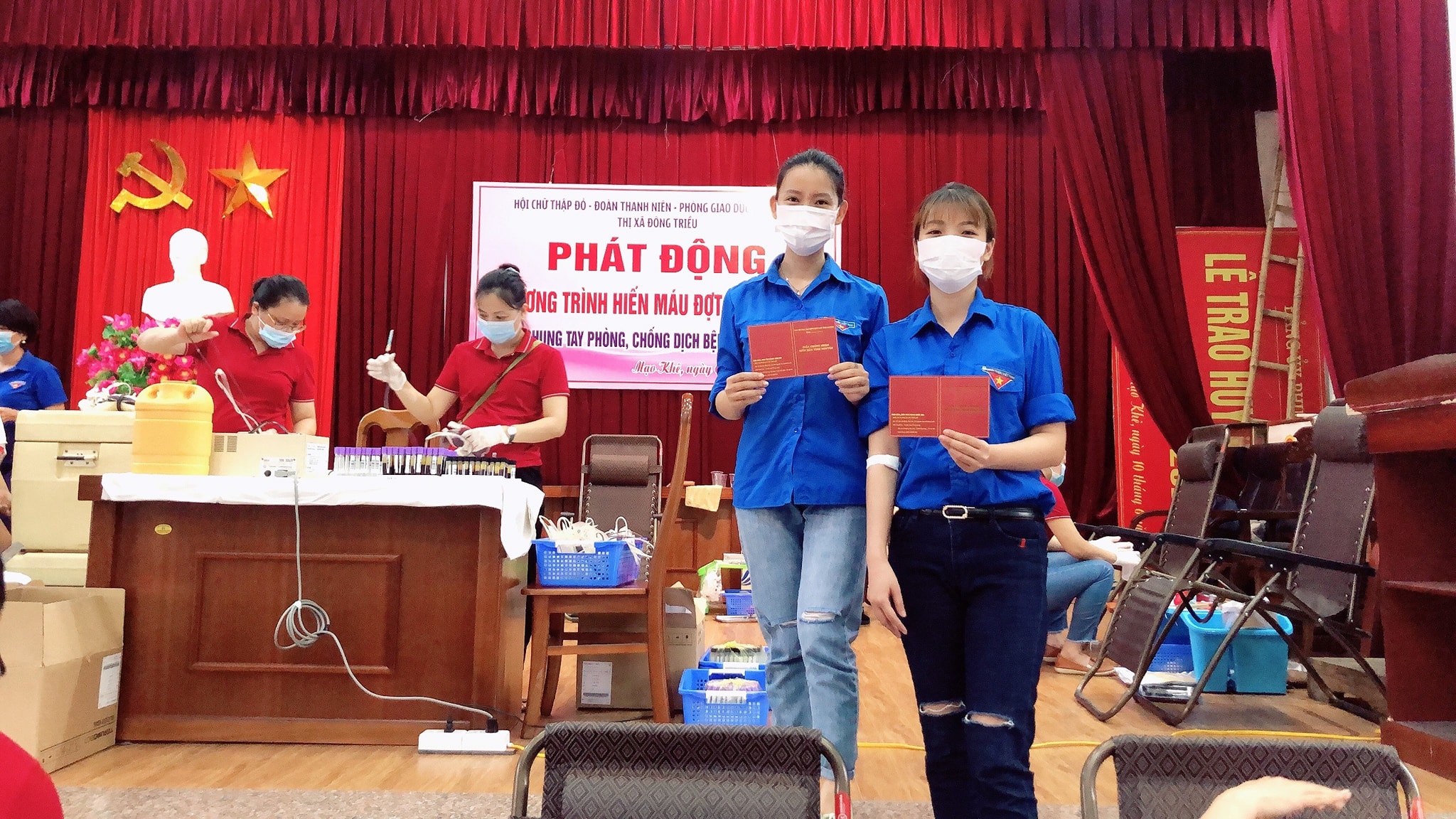 Đoàn viên thanh niên trường Tiểu học Vĩnh Khê tham gia hiến máu nhân đạo.