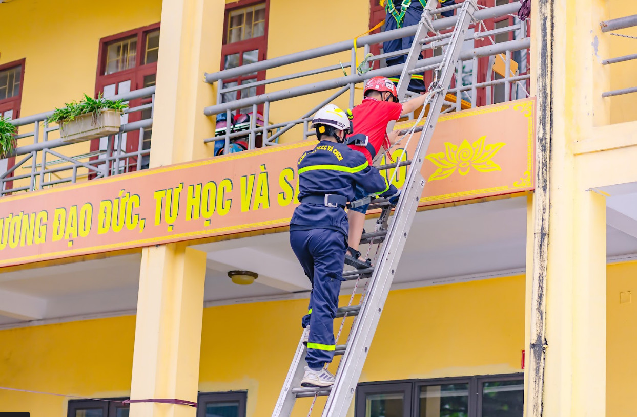 Trong buổi thực hành học sinh nhà trường được trang bị nhận thức đúng đắn và nghiêm túc về tác hại của lửa, học các kỹ năng thoát hiểm, kỹ năng sử dụng thiết bị chữa cháy cơ bản, xử trí khi gặp tình huống mà bản thân hoặc người khác bị kẹt trong đám cháy, kỹ năng sơ cứu, cứu thương cơ bản, kỹ năng tự bảo vệ bản thân, giúp các em biết cách ứng phó trong những tình huống nguy hiểm, bất lợi, biết phòng ngừa những nguy cơ bất trắc cho bản thân, kỹ năng cứu đuối, xử trí khi gặp tình huống mà bản thân hoặc người khác bị đuối nước.