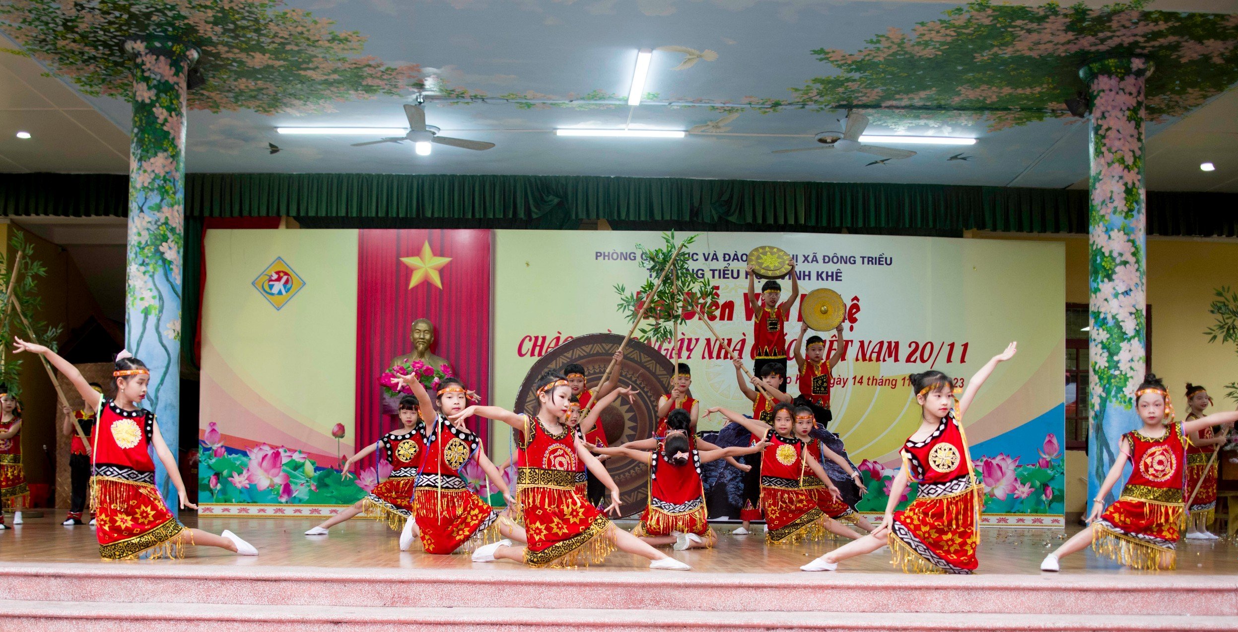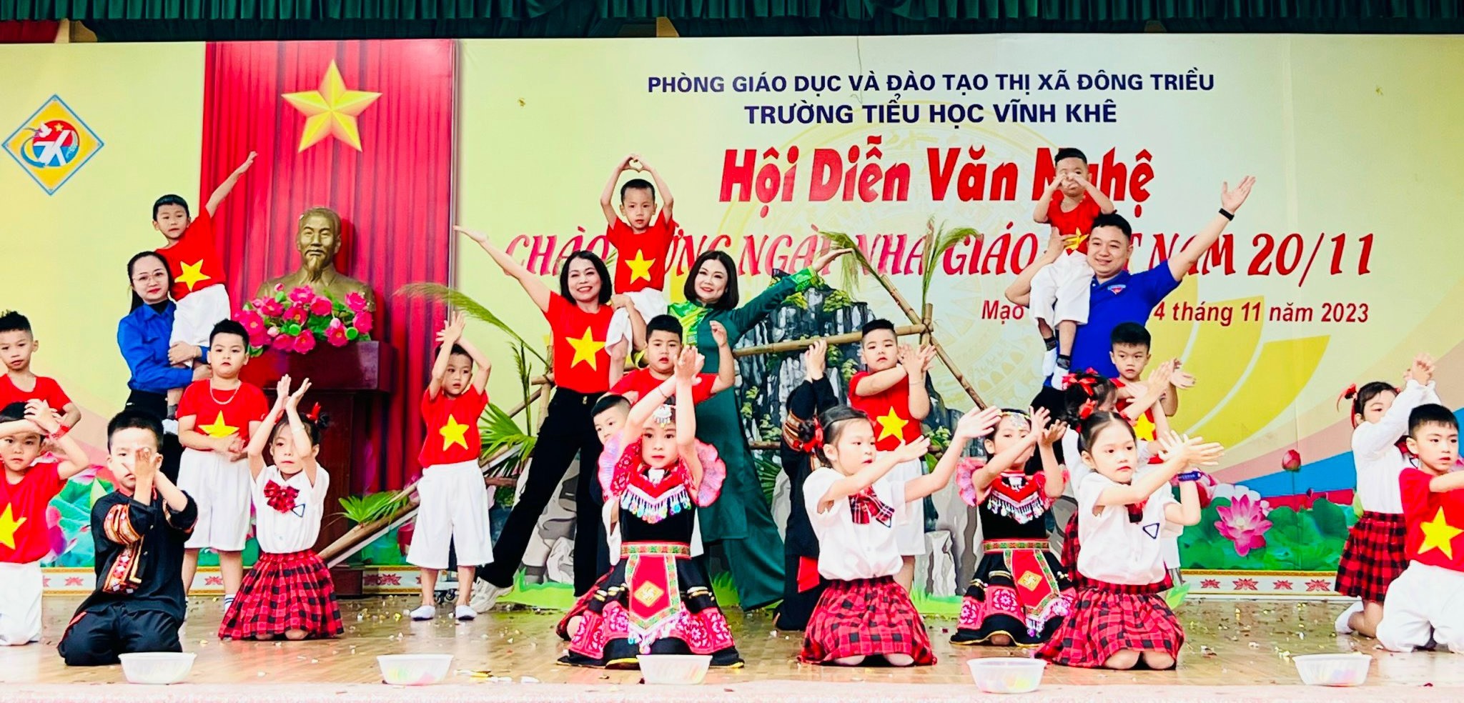 Thực hiện Kế hoạch số 292/KH-THVK ngày 09/10/2023 của trường Tiểu học Vĩnh Khê về việc tổ chức Hội diễn văn nghệ chào mừng Ngày Nhà giáo Việt Nam 20/11, sáng ngày 14/11 Liên đội nhà trường tổ chức cho các đội văn nghệ đến từ các lớp tham gia hội diễn.