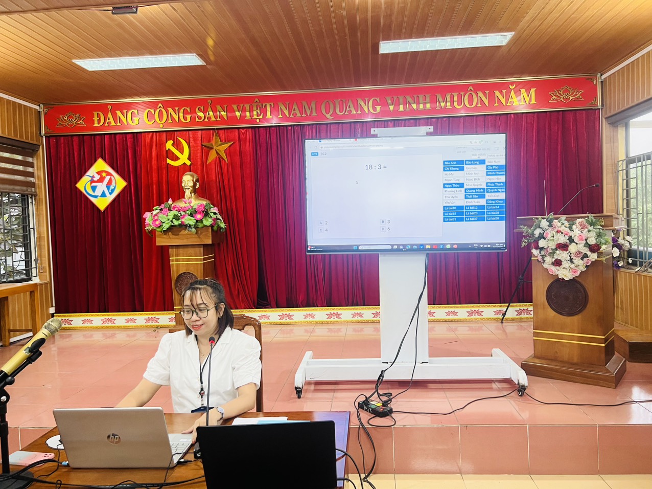 Kết luận hội nghị, cô giáo Phạm Thị Nguyệt – Bí thư chi bộ - Hiệu trưởng nhà trường đánh giá cao tinh thần tích cực, thảo luận, thực hành sôi nổi, có hiệu quả của cán bộ, giáo viên tham gia tập huấn, chỉ đạo mọi người tiếp tục nghiên cứu, ứng dụng CNTT, chuyển đổi số đạt hiệu quả cao trong dạy học và báo cáo, thống kê giáo dục.