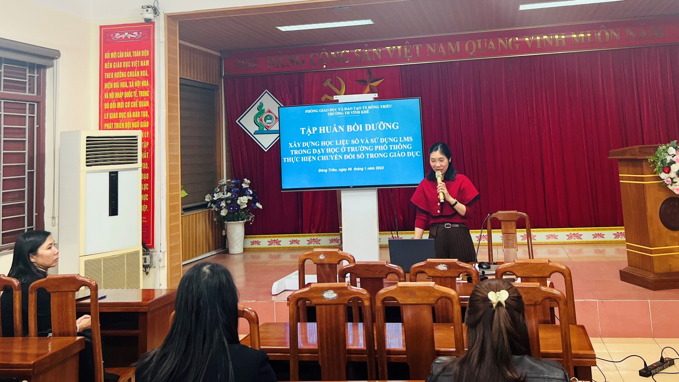 Thực hiện Kế hoạch hoạt động chuyên môn tháng 01/2023, chiều ngày 06/01 trường Tiểu học Vĩnh Khê tổ chức Hội nghị tập huấn xây dựng học liệu số và sử dụng hệ thống LMS trong dạy học, thực hiện chuyển đổi số trong giáo dục.