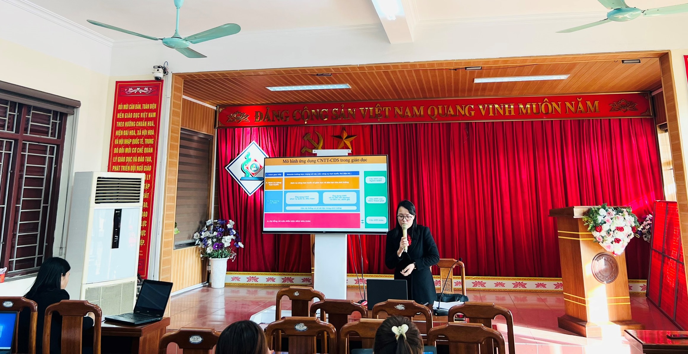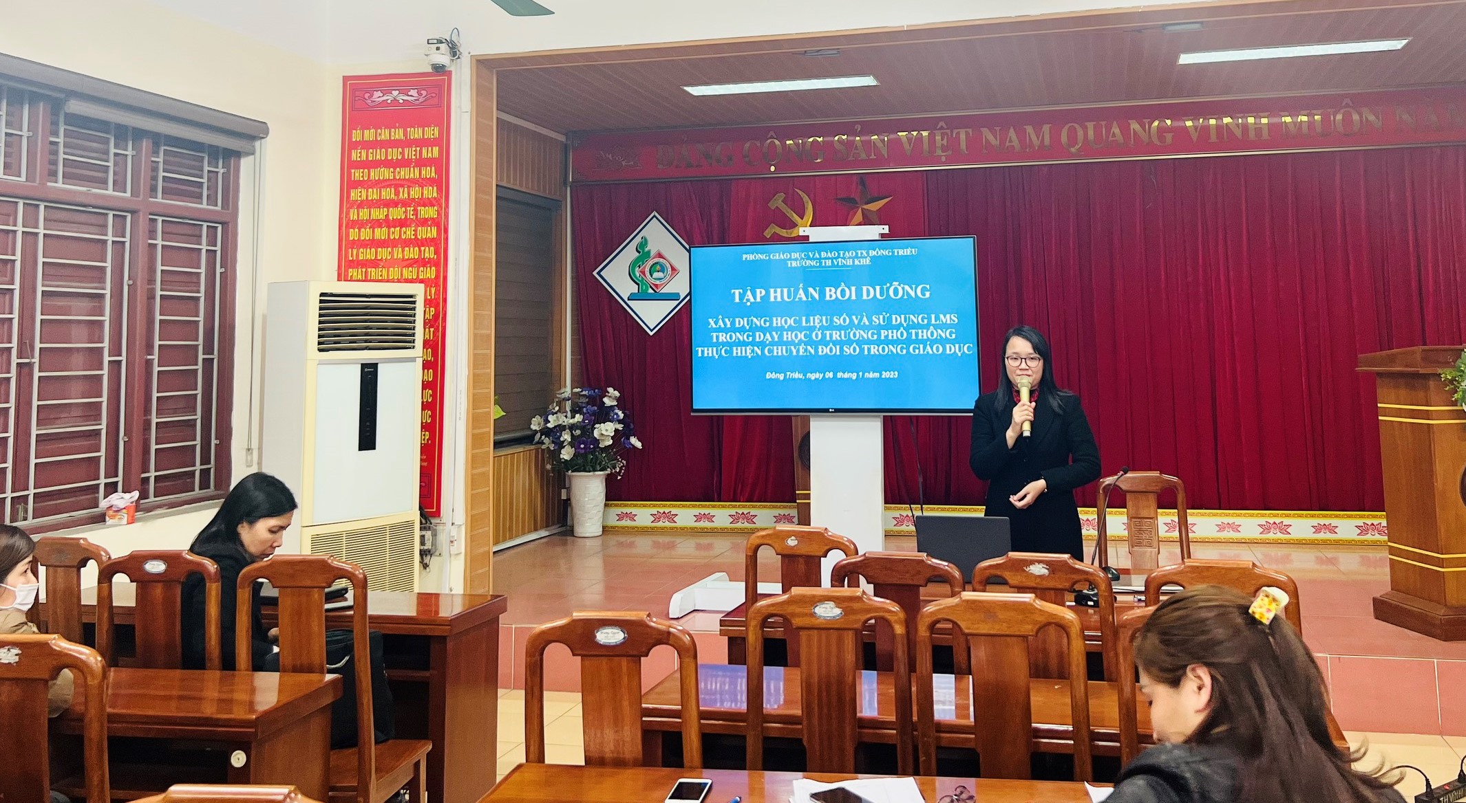 Tham dự hội nghị có đồng chí Phạm Thị Nguyệt – Bí thư chi bộ - Hiệu trưởng và toàn thể cán bộ, giáo viên nhà trường. Chia sẻ kinh nghiệm và các kỹ năng xây dựng học liệu số và sử dụng hệ thống LMS trong dạy học có đồng chí Lưu Thị Dung – Tổ trưởng tổ 2+3, Nguyễn Thị Tuyết – giáo viên Âm nhạc là 02 giáo viên cốt cán của nhà trường, được tham dự các lớp tập huấn do Sở GD&ĐT, phòng GD&ĐT tổ chức. Qua hội nghị này giúp cán bộ, giáo viên nâng cao năng lực chuyên môn nghiệp vụ, đáp ứng yêu cầu của chương trình giáo dục phổ thông 2018, kỹ năng xây dựng, chia sẻ học liệu số của một bài học, môn học/hoạt động giáo dục, sử dụng hệ thống LMS trong dạy học và năng lực ứng dụng công nghệ thông tin phục vụ hoạt động chuyên môn nghề nghiệp.