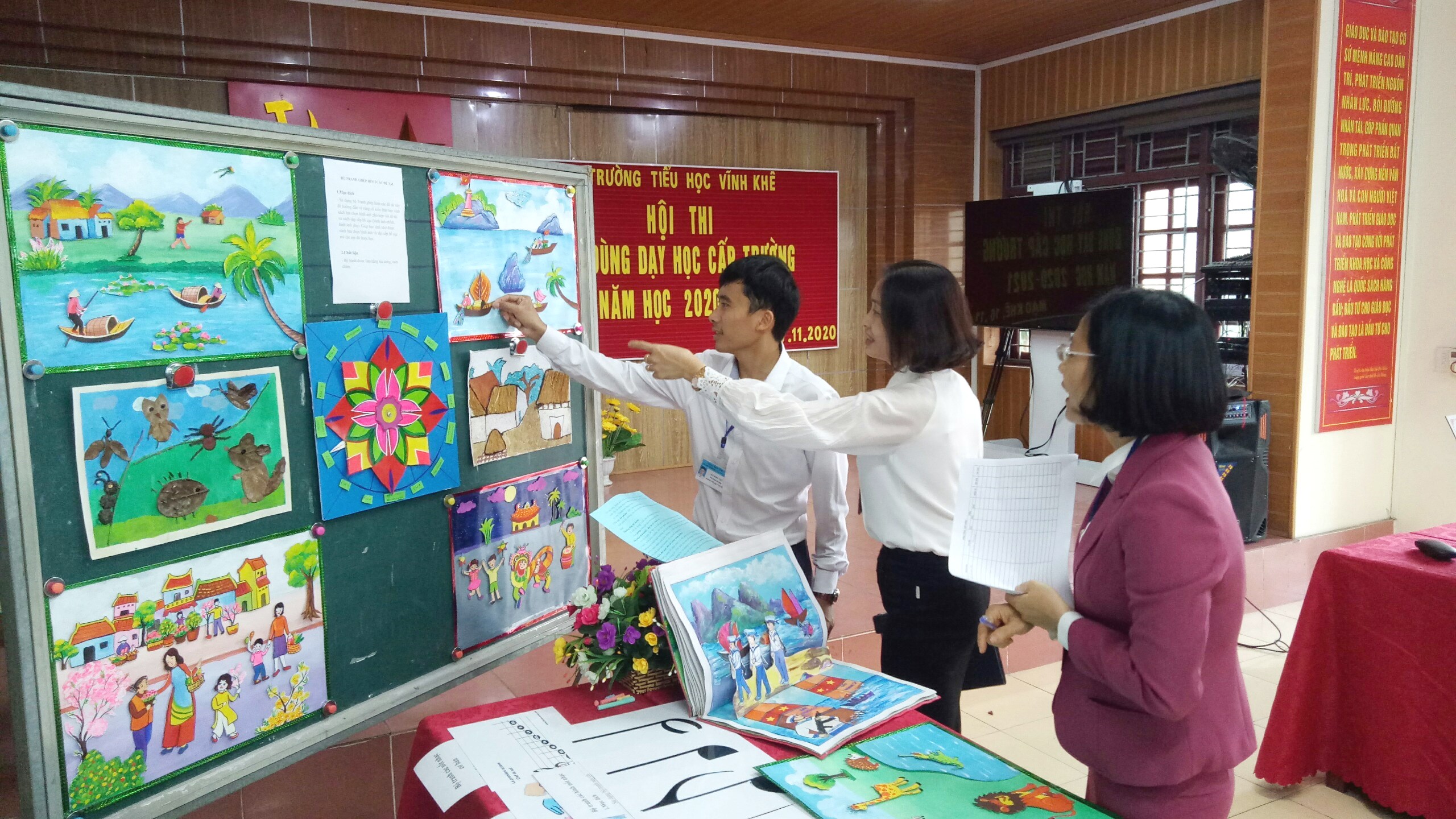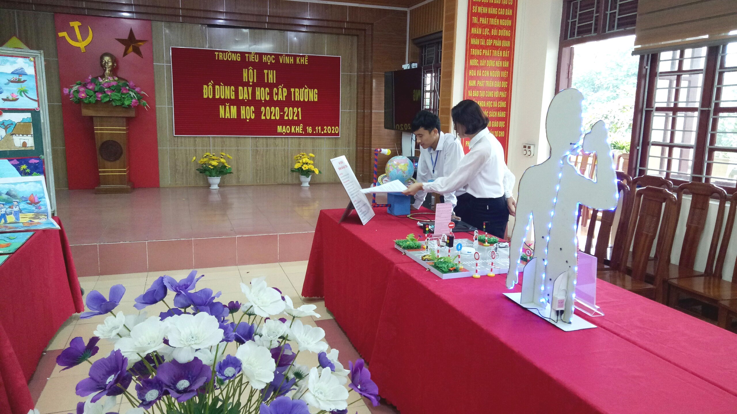 Thực hiện kế hoạch chuyên môn tháng 11. Sáng ngày 16/11, Ban tổ chức hội thi tự làm đồ dùng dạy học năm học 2020-2021 trường Tiểu học Vĩnh Khê tiến hành chấm, đánh giá, công bố kết quả sản phẩm đồ dùng dạy học của nhóm giáo viên các khối lớp.
