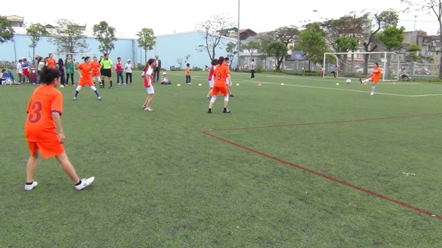 Sau phần thi kéo co và nhảy bao bố của các em học sinh là trận chung kết bóng đá nữ do Đoàn thanh niên nhà trường tổ chức giữa 2 đội tổ 1 và tổ 2-3.
