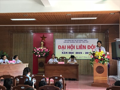 Thực hiện chương trình công tác Đội & Phong trào thiếu nhi năm học 2018-2019,kỉ niệm được sự chỉ đạo của Hội đồng Đội Huyện Đông Triều và Ban giám hiệu trường Tiểu học Vĩnh Khê. Ngày 05/10/2018 Liên đội trường Tiểu học Vĩnh Khê long trọng tổ chức Đại hội liên đội năm học 2018-2019.Về dự đại hội có cô Mạc Thị Thùy Dương - Tổng phụ trách Đội, cô Đỗ Giang Thanh - Bí thư Đoàn Thanh niên cùng 200 đại biểu ưu tú đại diện cho hơn 1500 Đội viên - Nhi đồng trong toàn Liên đội trường Tiểu học Vĩnh Khê.