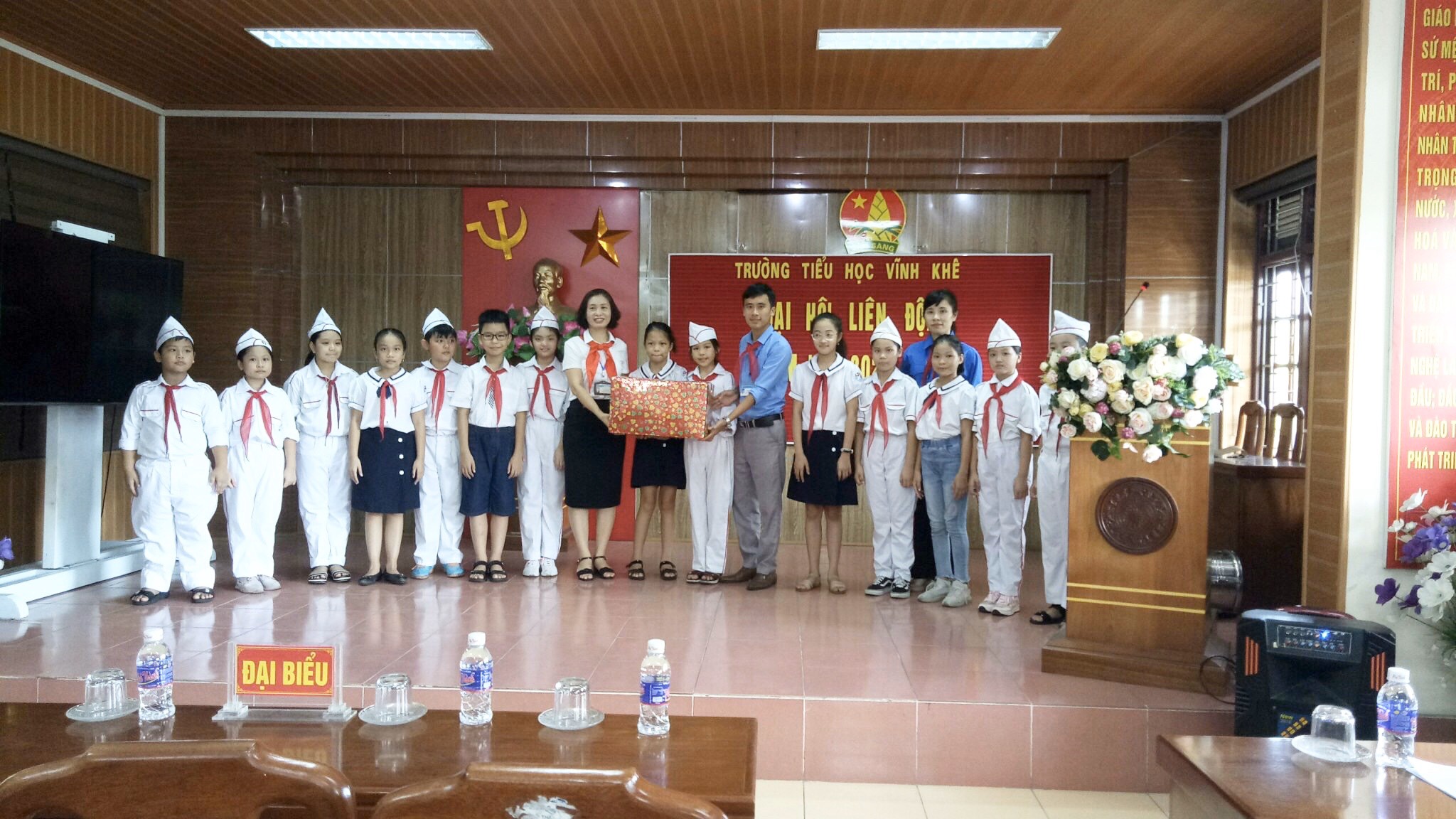 Thầy cô giáo trong BGH nhà trường tặng quà chúc mừng Ban chỉ huy Liên đội