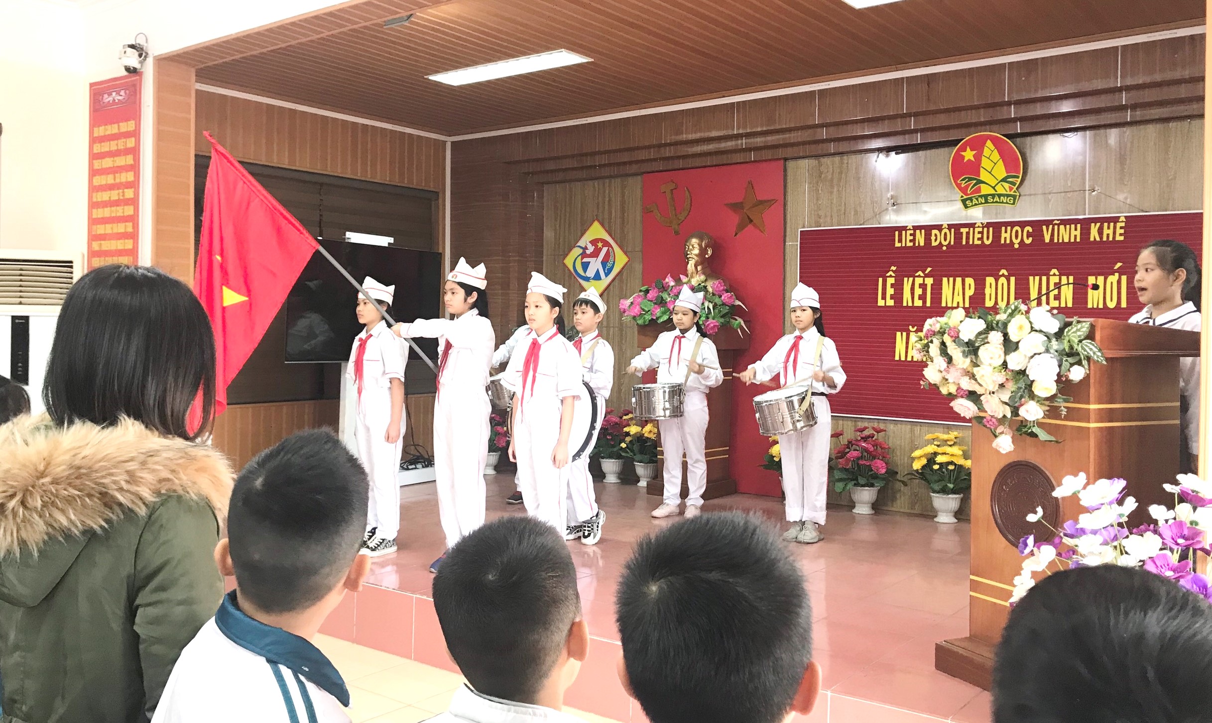 Liên đội trường Tiểu học Vĩnh Khê tổ chức lễ kết nạp đội viên mới năm học 2020-2021.
