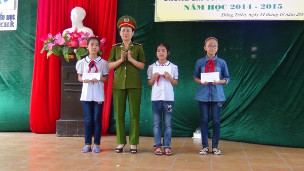 Đại diện Công an huyện trao giải nhì cho các đội thi 4D2, 5E2 và 5E3