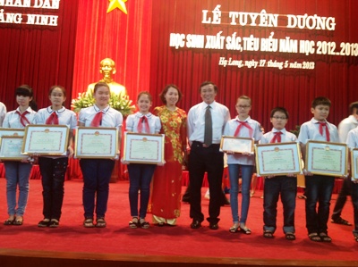 Ngày 17/5/2013, tại Trung tâm tổ chức Hội nghị của tỉnh, Sở Giáo dục và Đào tạo Quảng Ninh đã tổ chức Lễ tuyên dương học sinh xuất sắc, tiêu biểu năm học 2012-2013. Tham dự buổi lễ là những học sinh đạt giải Nhất trong kì thi Giao lưu văn toán tuổi thơ và tiếng Anh cấp tỉnh được tổ chức vào cuối tháng 4 vừa qua; đặc biệt là sự có mặt của những học sinh đạt Huy chương Vàng, Bạc, Đồng tại cuộc thi giải toán (Violimpic), thi tiếng Anh (IOE) qua Internet cấp Quốc gia trong toàn tỉnh của năm học này.
