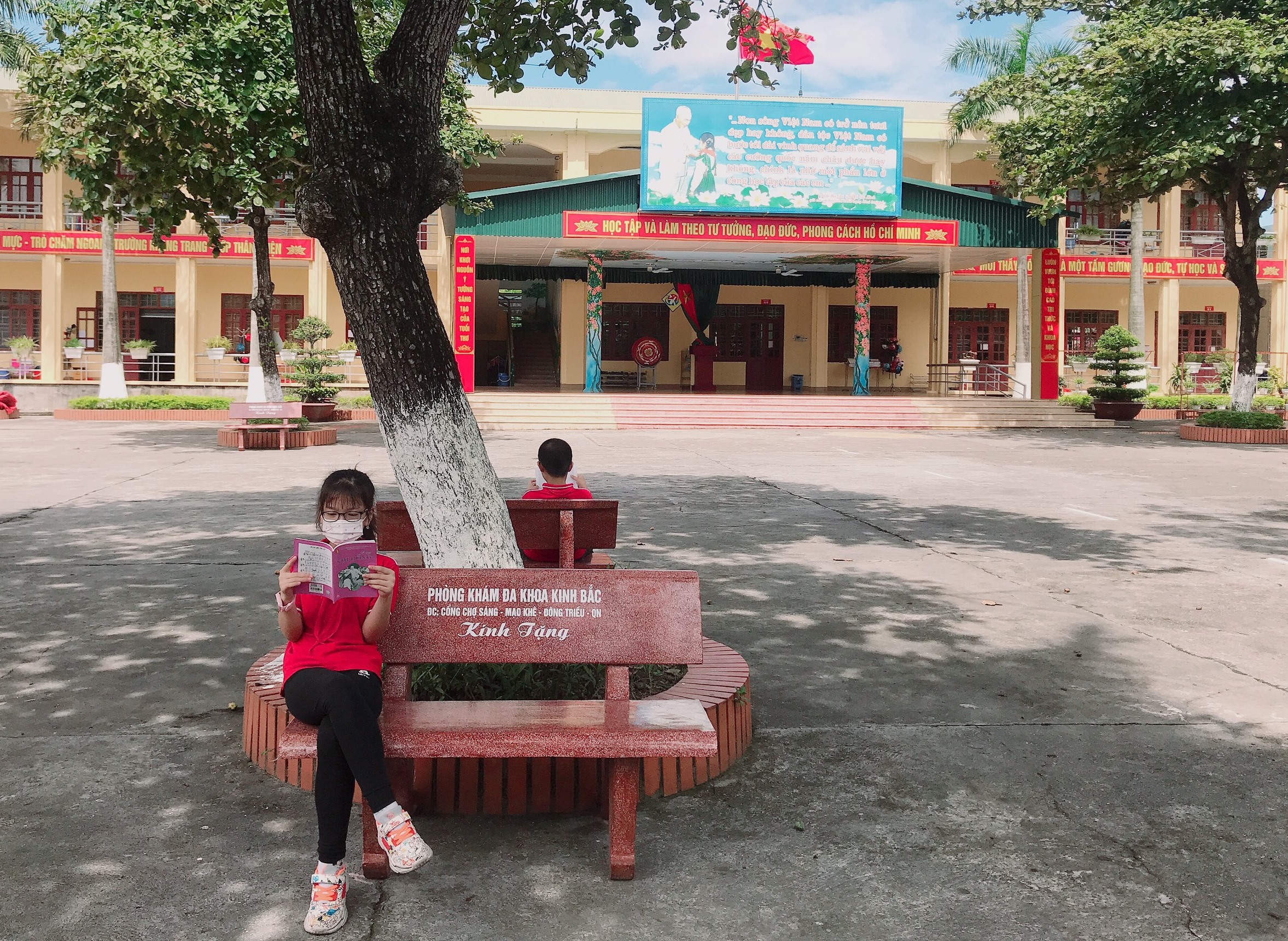 Phòng khám đa khoa Kinh Bắc – Mạo Khê tặng ghế đá cho học sinh trường TH Vĩnh Khê.