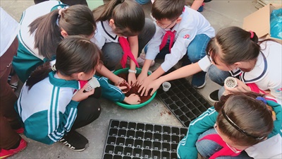 Học sinh thực hành trồng rau thủy canh