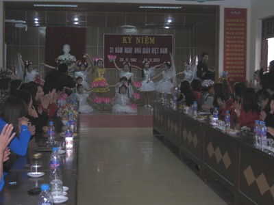 Đặc biệt, đến chúc mừng Ngày hội của các thầy cô, học sinh trong toàn trường đã mang những tiết mục văn nghệ đặc sắc nhất bày tỏ lòng biết ơn vô hạn của mình. Những lời ca tiếng hát về thầy cô, về mái trường, những ước mơ tốt đẹp như chứa đựng bao hoài bão vươn tới tương lai của học trò. Trước những tâm hồn trẻ thơ ấy, mỗi chúng ta lại trăn trở thêm về trách nhiệm của mình, không ngừng phấn đấu vươn lên, cống hiến nhiều hơn nữa cho sự nghiệp giáo dục, không phụ lòng tin của bao thế hệ măng non, của các bậc phụ huynh và toàn xã hội.