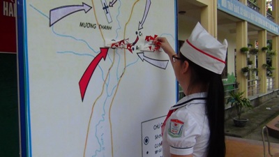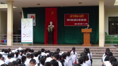 Các chiến sĩ nhỏ Điện Biên cắm cờ kết thúc cuộc hành trình