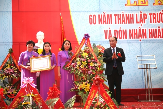 thừa ủy quyền của Chủ tịch nước trao Huân chương Lao động hạng Nhất cho nhà trường