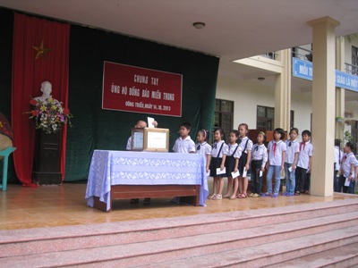 Lễ phát động không chỉ nhận được sự tham gia ủng hộ của học sinh các khối lớp mà còn có sự hưởng ứng nhiệt tình của toàn thể cán bộ, giáo viên, nhân viên trong nhà trường. Sau 1 tuần phát động số tiền đã quyên góp được là: 7.500.000đ ( Bảy triệu năm trăm nghìn đồng chẵn). Số tiền tuy không nhiều nhưng đủ nói lên tấm lòng, tình cảm của thầy và trò nhà trường dành cho đồng bào gặp thiên tai bão lụt.