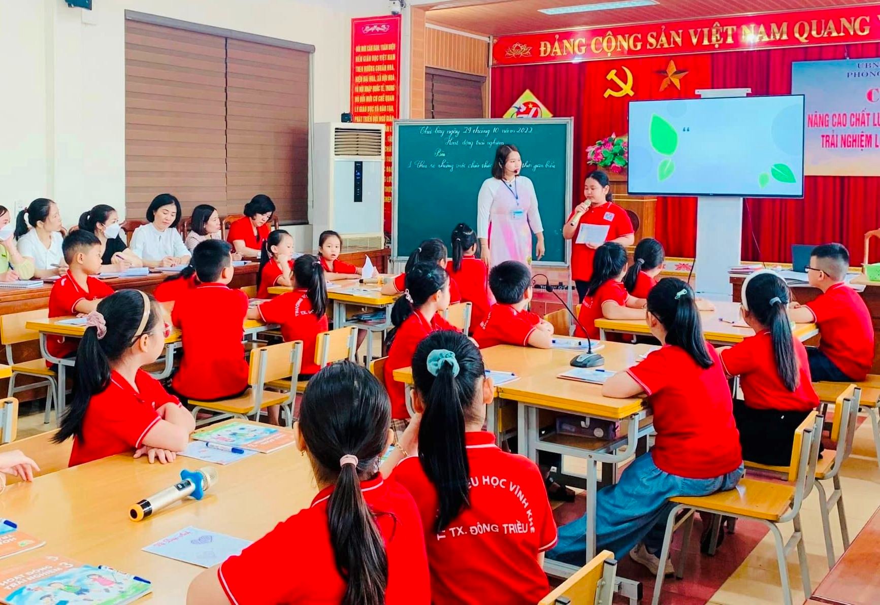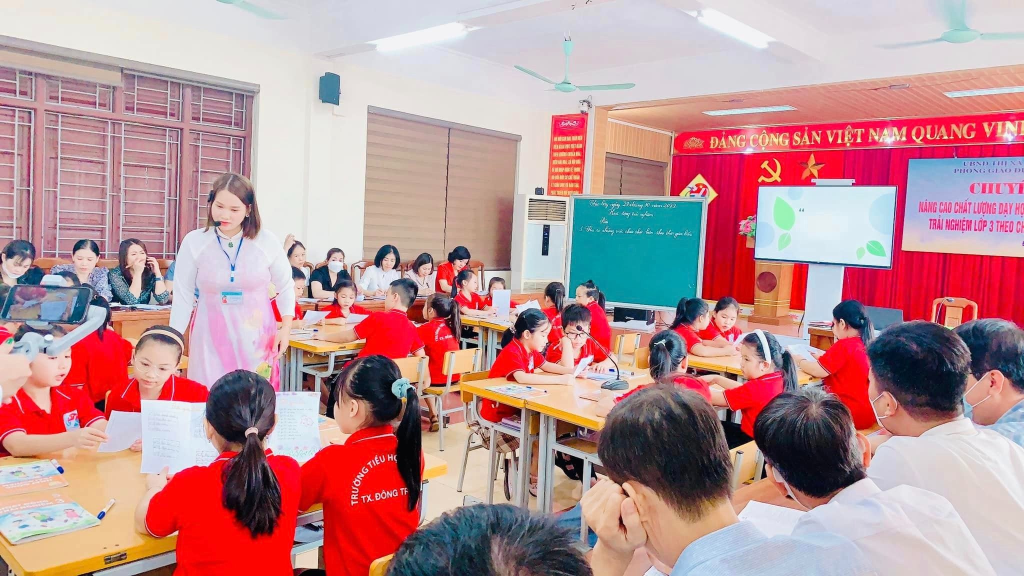 Tới dự và chỉ đạo hội nghị chuyên đề có đồng chí: Phạm Thị Thanh Tâm – Thị ủy viên – Trưởng phòng GD&ĐT thị xã Đông Triều, cùng các đồng chí chuyên viên, CBQL, giáo viên lớp 3 của các trường Tiểu học trên toàn thị xã. Thực hiện chuyên đề của trường Tiểu học Vĩnh Khê là cô giáo Vũ Ngọc Huyền – giáo viên chủ nhiệm lớp 3C5, môn: Hoạt động trải nghiệm, chủ đề 2: Nếp sống đẹp, bài 6: Cuốn sổ nhắc việc - làm việc theo kế hoạch.