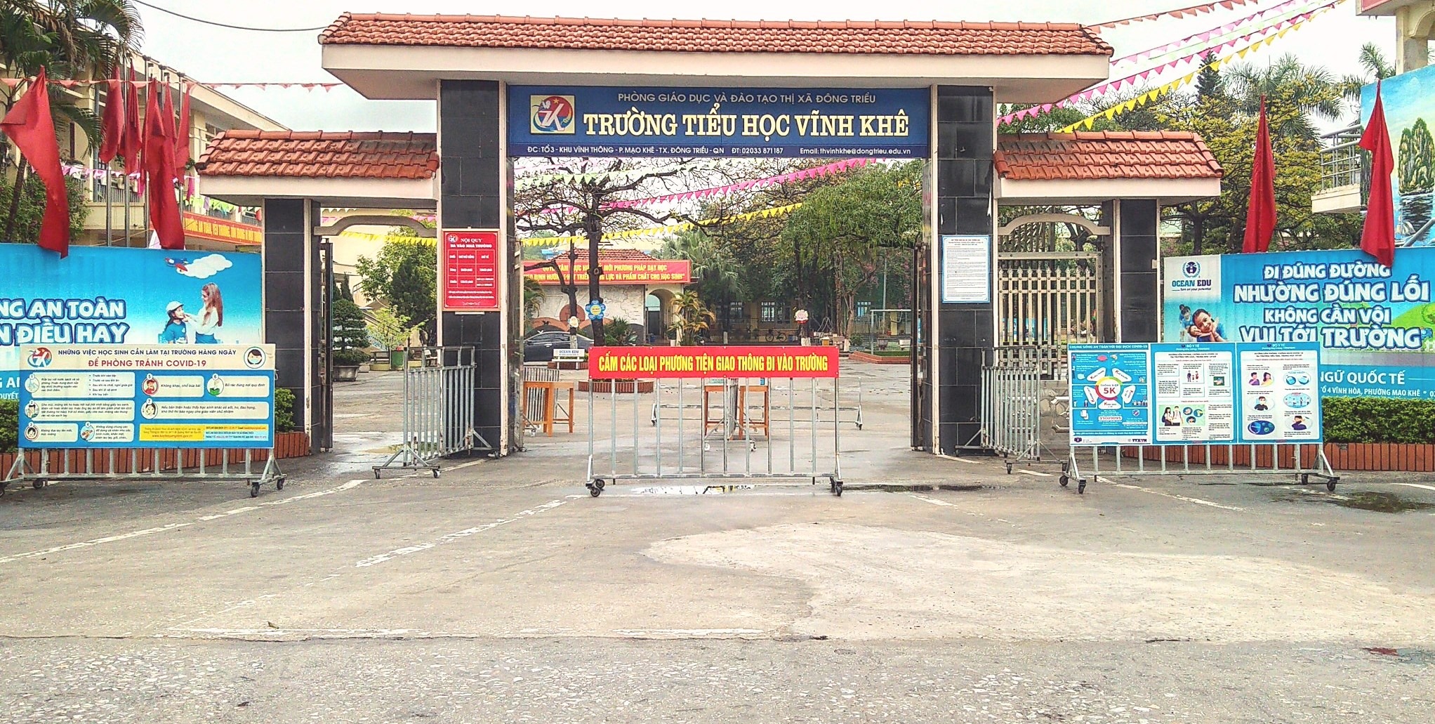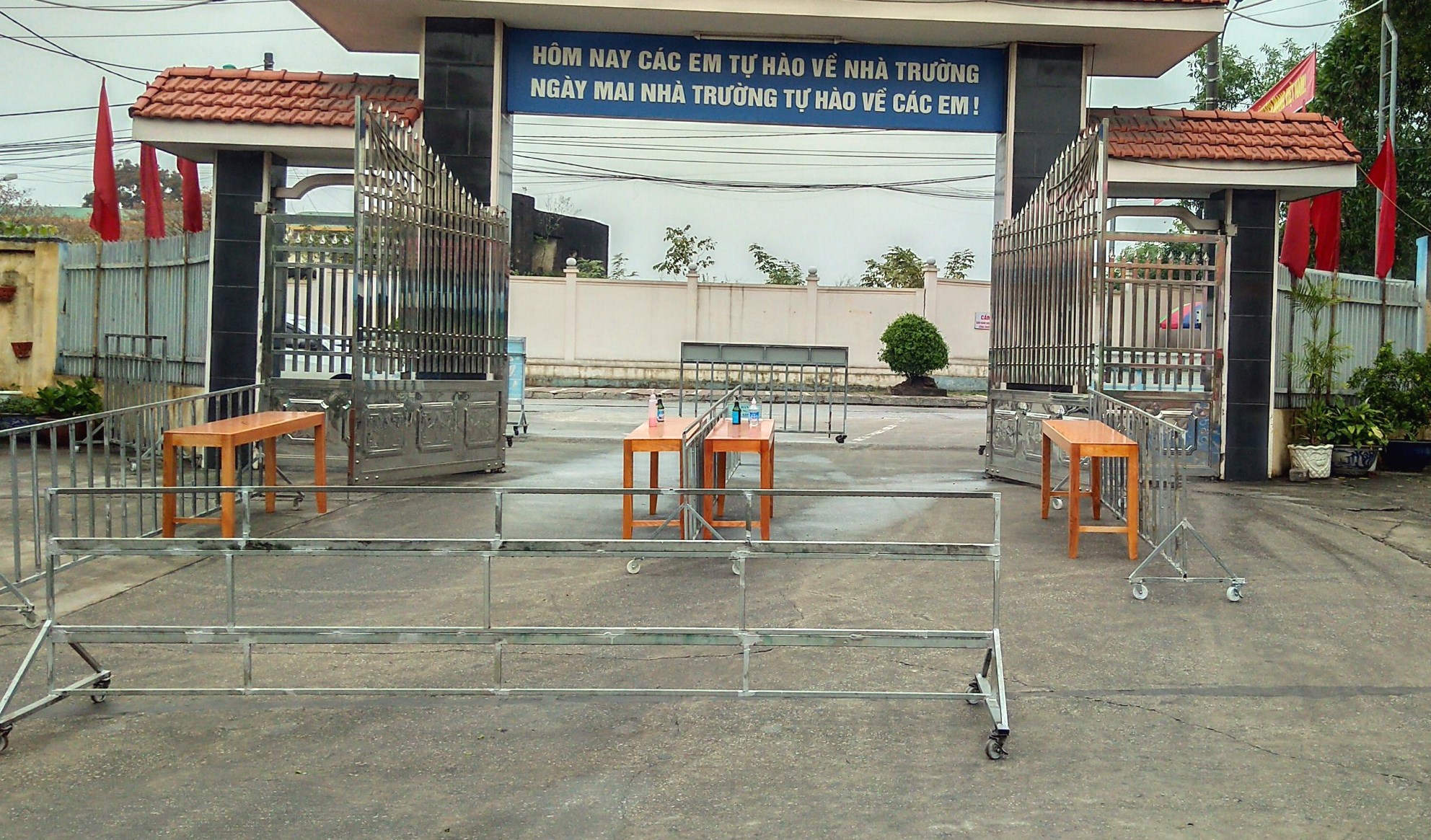 Khu vực cổng trường đã được phân luồng, khử khuẩn