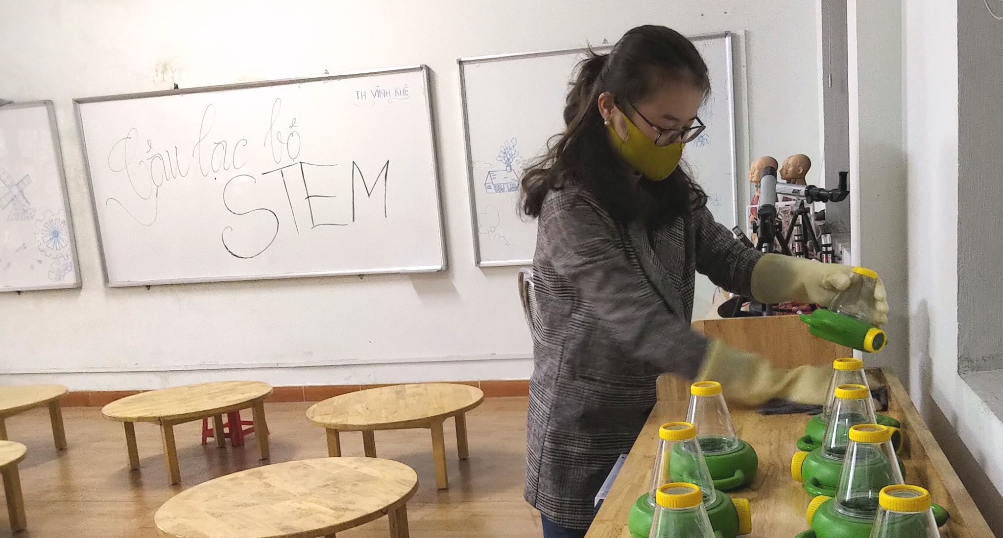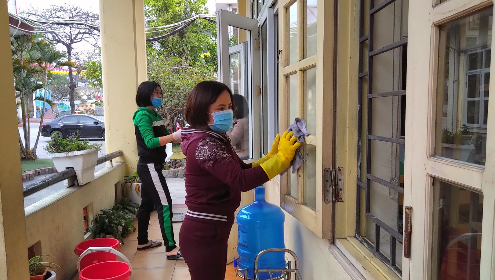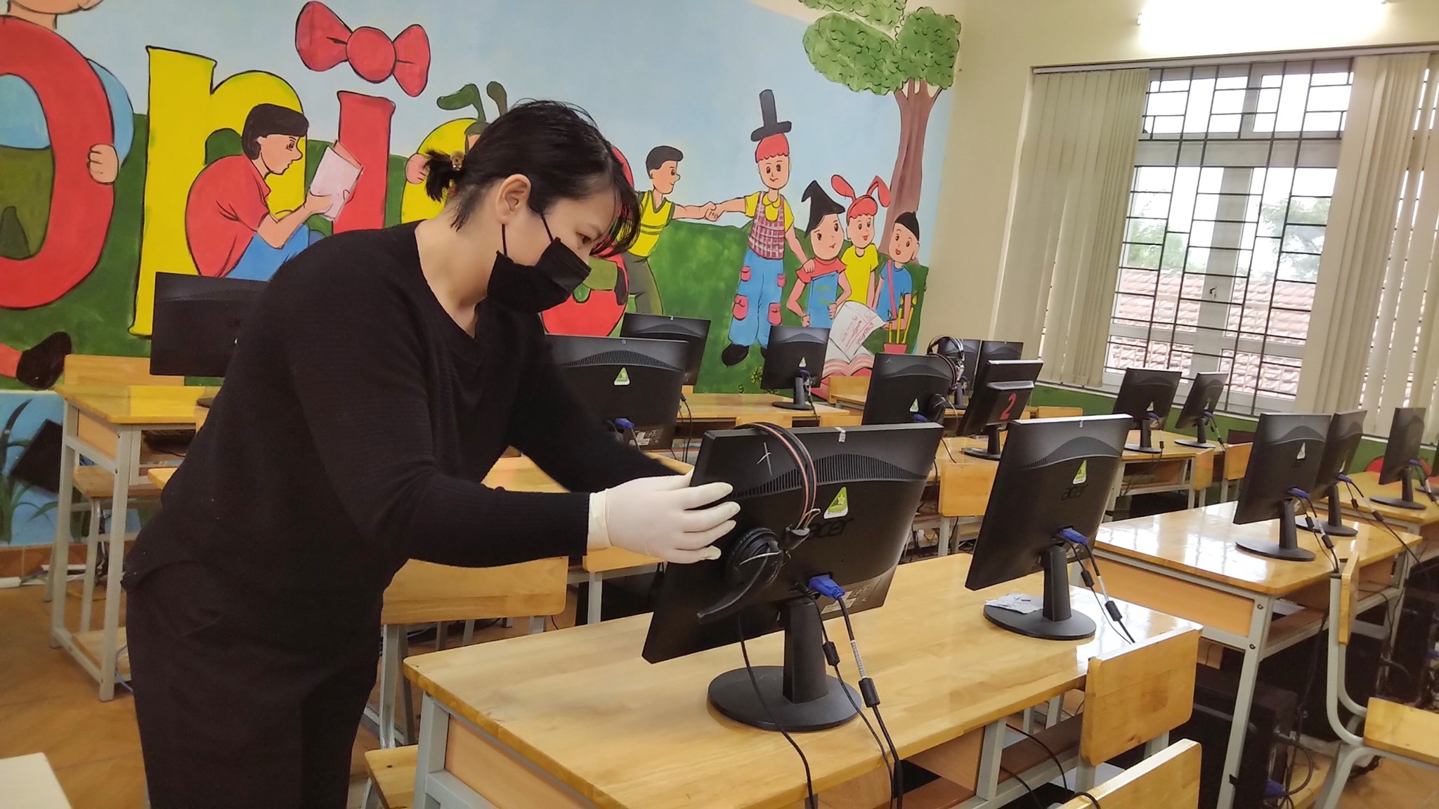 Giáo viên tổng vệ sinh, lau dọn, khử khuẩn các thiết bị, đồ dùng, phòng học