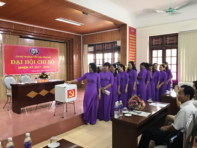 Thực hiện chương trình công tác Đảng của Đảng ủy phường Mạo Khê, ngày 17 tháng 7 năm 2017, chi bộ trường Tiểu học Vĩnh Khê đã tổ chức Đại hội chi bộ nhiệm kì 2017-2020. Tham dự và chỉ đạo đại hội có các đồng chí trong Ban thường vụ Đảng ủy phường Mạo Khê cùng với sự tham gia của toàn thể Đảng viên trong chi bộ.Đại hội đã thông qua báo cáo kết quả lãnh đạo thực hiện nhiệm vụ Chính trị nhiệm kỳ 2015-2017 và phương hướng, nhiệm vụ công tác lãnh đạo của chi bộ nhiệm kỳ 2017-2020. Báo cáo đã đánh giá toàn diện những thành quả, điểm mạnh, điểm yếu và rút ra bài học kinh nghiệm qua việc thực hiện Nghị quyết của chi bộ trong nhiệm kỳ qua. Đồng thời, Đại hội đã thảo luận và thông qua phương hướng nhiệm vụ, giải pháp chủ yếu nhằm thực hiện thắng lợi các chỉ tiêu mà Đại hội Chi bộ nhiệm kỳ 2017-2020 đã đề ra tại đại hội, các đồng chí Đảng viên cũng đã có những đóng góp hết sức cụ thể và tâm huyết cho bản báo cáo, phương hướng. Đặc biệt, đại hội còn được tiếp thu ý kiến chỉ đạo của đồng chí Nguyễn Văn Khoa Ủy viên BTV Đảng ủy - Chủ tịch UBMTTQ phường Mạo Khê.
