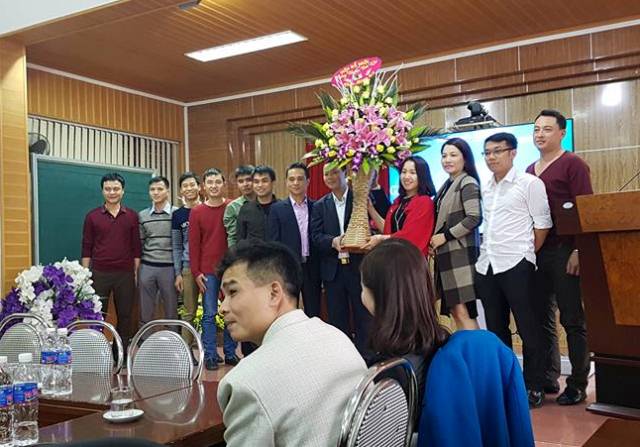 Đại diện các chàng rể cũ và mới tặng hoa chúc mừng