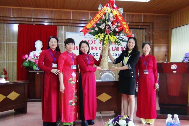 Phát biểu chỉ đạo Hội nghị, đồng chí Nguyễn Thị Hường- Phó trưởng phòng GD&ĐT thị xã Đông Triều đánh giá cao những thành tích mà nhà trường đạt được trong năm học 2014-2015. Qua đó, đồng chí cũng đề nghị nhà trường tiếp tục giữ vững, phát huy những kết quả đã đạt được đồng thời phấn đấu vượt khó khăn để đạt được những chỉ tiêu đã đề ra trong năm học 2015-2016.