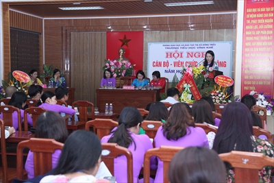 Tại hội nghị, đồng chí Lê Thị Thu - Bí thư chi bộ - Hiệu trưởng nhà trường báo cáo kết quả thực hiện nhiệm vụ năm học 2017-2018 và phương hướng, nhiệm vụ, chỉ tiêu thi đua của nhà trường trong năm học 2018-2019.