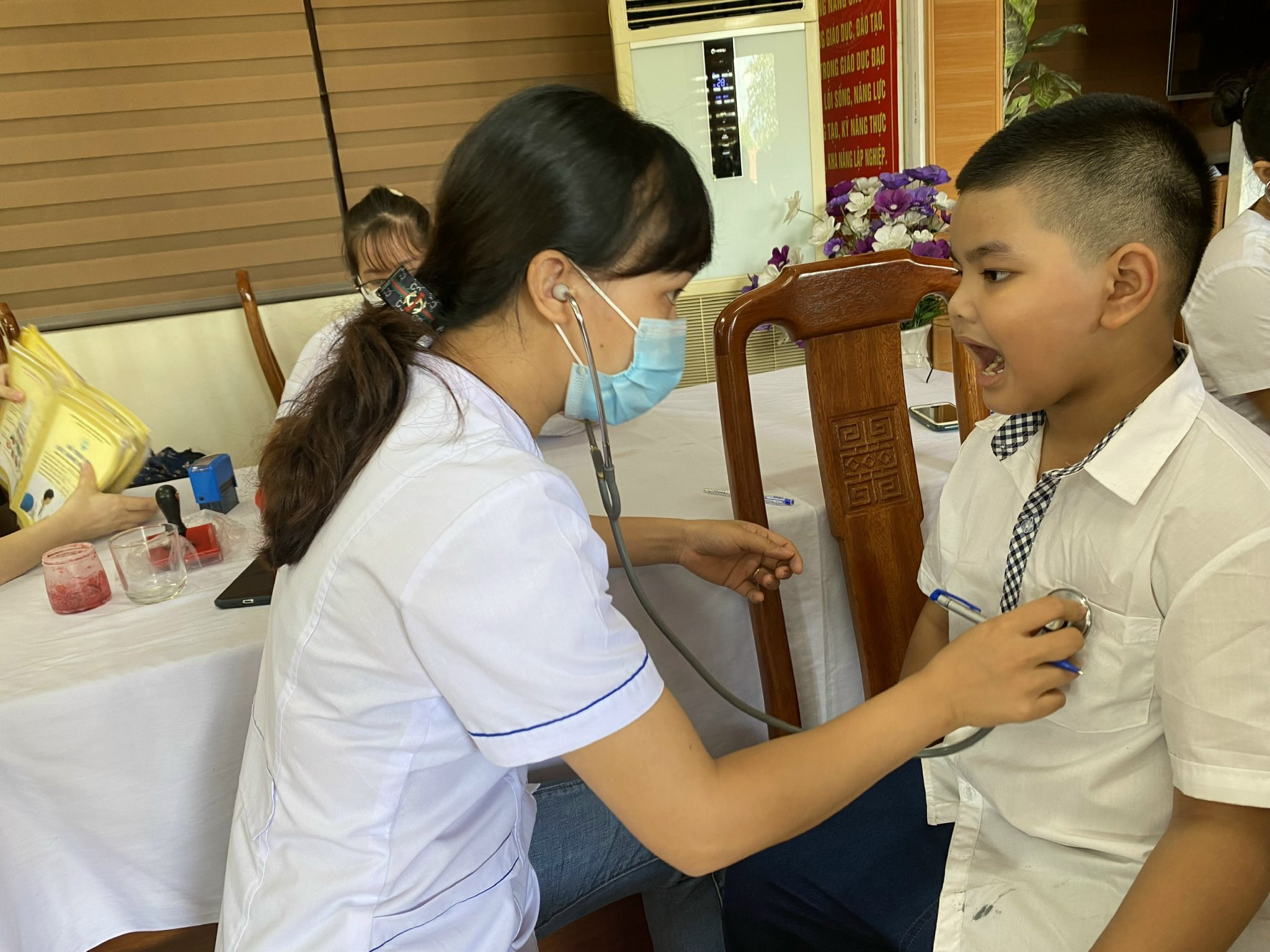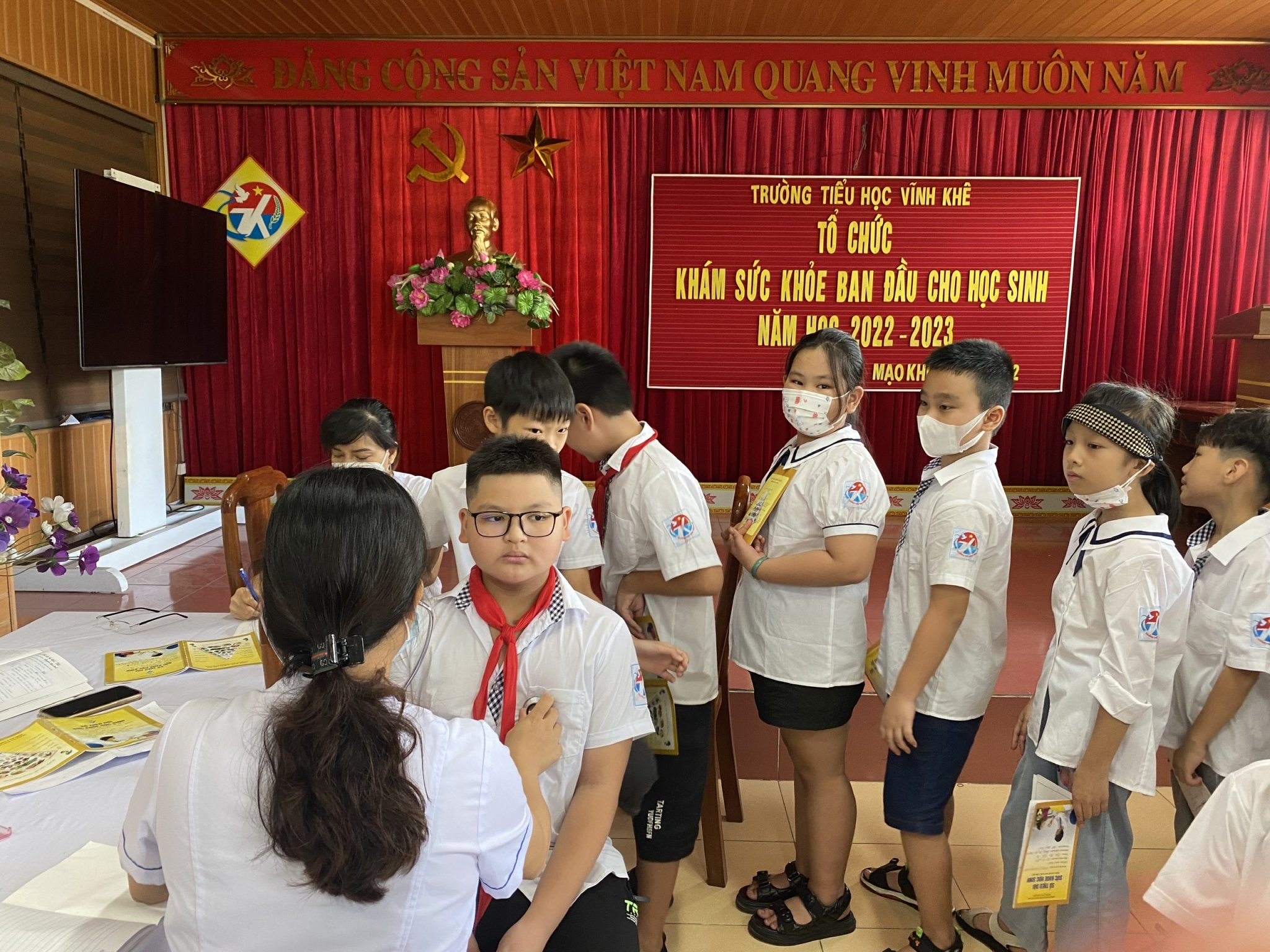 Trường Tiểu học Vĩnh Khê tổ chức khám sức khỏe ban đầu cho học sinh năm học 2022-2023.