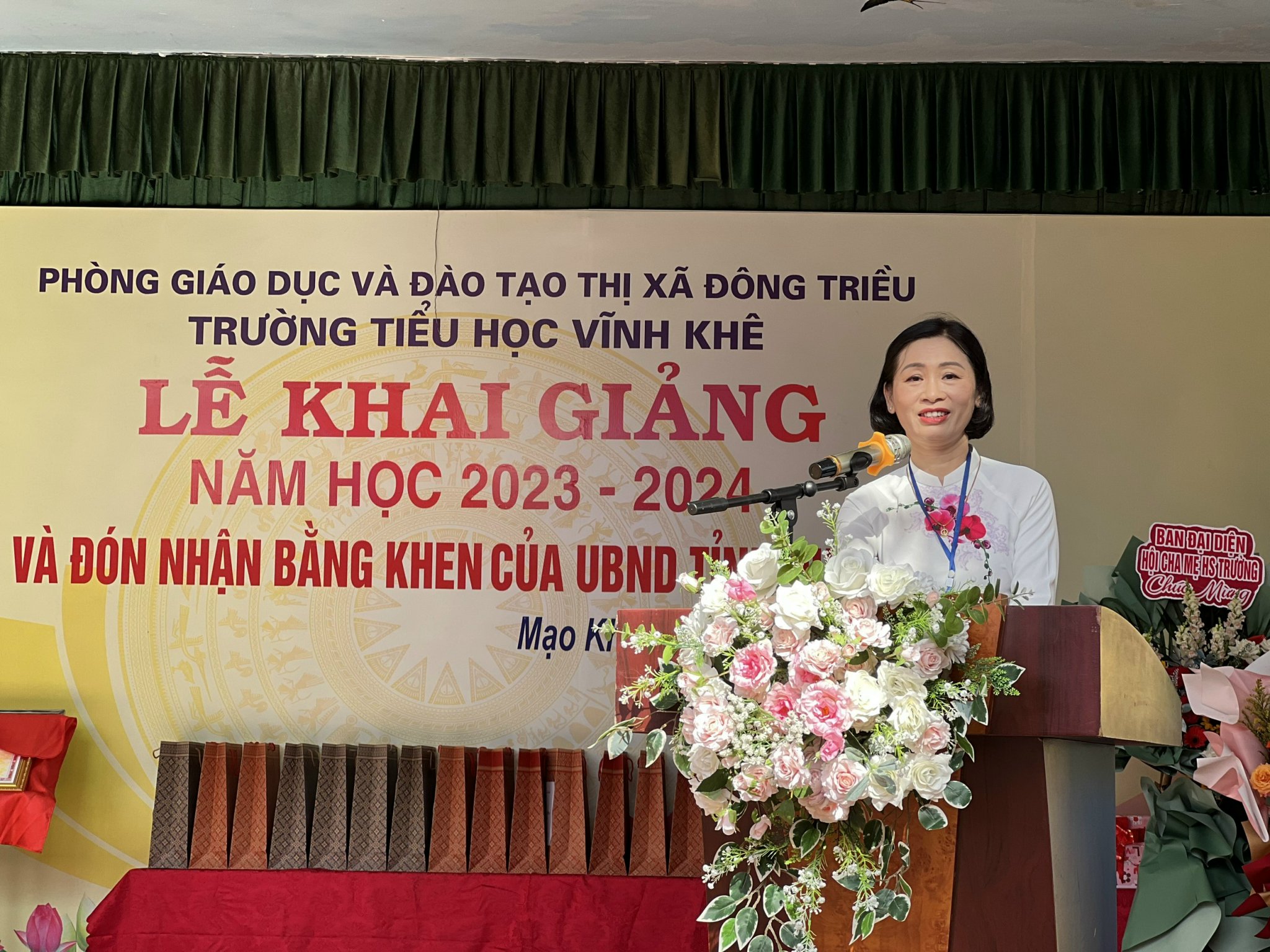 Hòa chung trong không khí vui tươi của học sinh, sinh viên trên toàn quốc, sáng nay, ngày 5/9, trường Tiểu học Vĩnh Khê tổ chức Lễ khai giảng năm học 2023 – 2024 và đón nhận Bằng khen của UBND tỉnh Quảng Ninh.