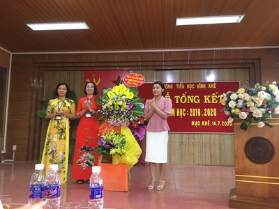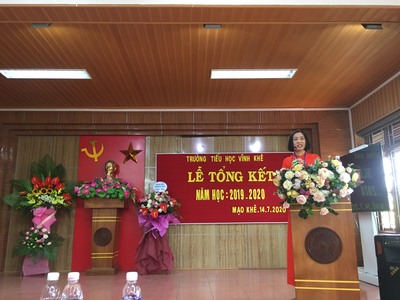 Thực hiện theo kế hoạch năm học, sáng ngày 14/7/2020, trường Tiểu học Vĩnh Khê tổ chức lễ tổng kết năm học 2019-2020.Tham dự buổi tổng kết, về phía chính quyền địa phương có Bà Nguyễn Mai Anh - Đảng ủy viên, Phó Chủ tịch HĐND phường Mạo Khê; về phía lãnh đạo ngành có bà Nguyễn Thị Hường - Phó trưởng phòng GD&ĐT thị xã Đông Triều, ban đại diện Hội CMHS cùng toàn thể các đ/c CB-GV-NV trong hội đồng sư phạm nhà trường.