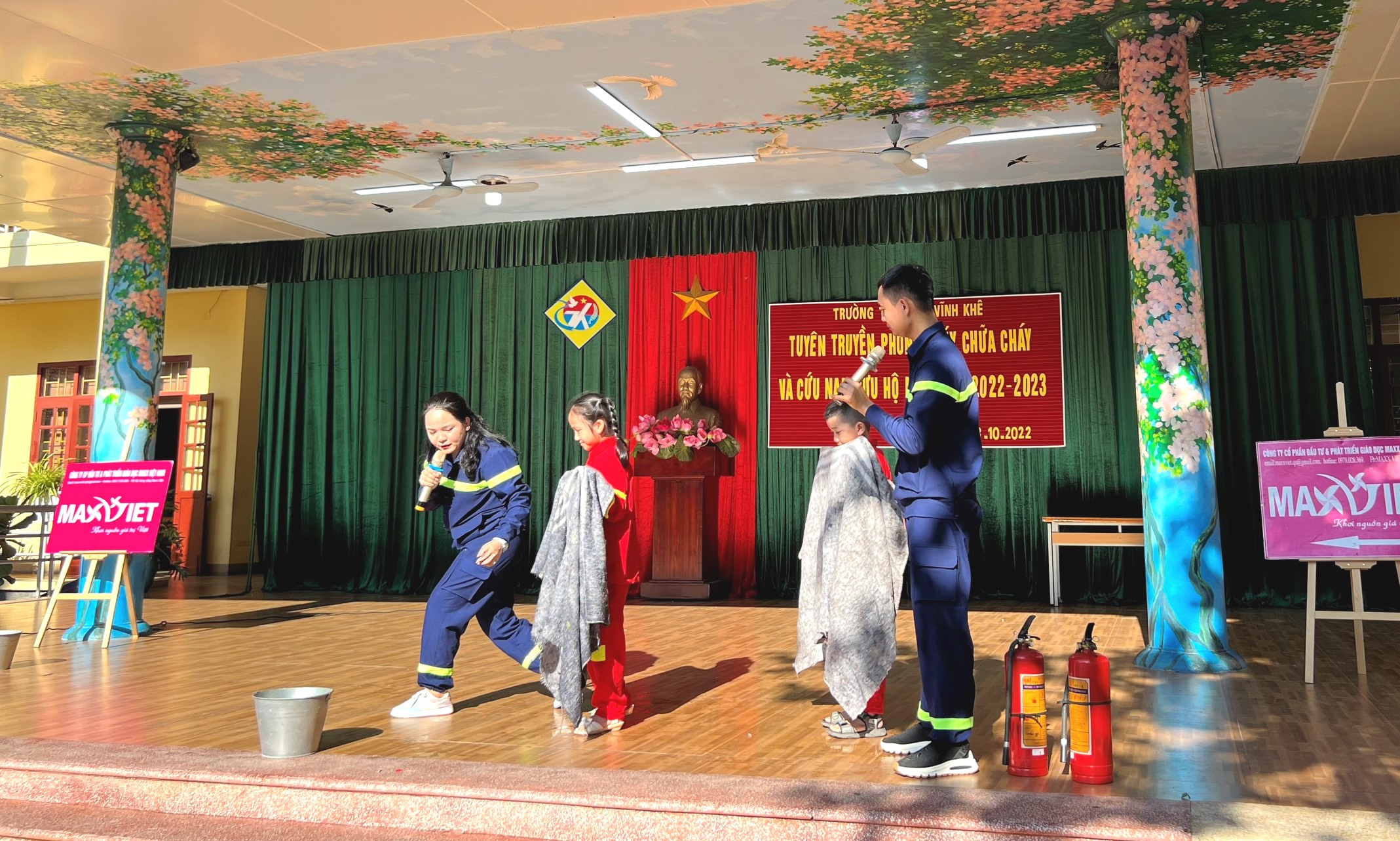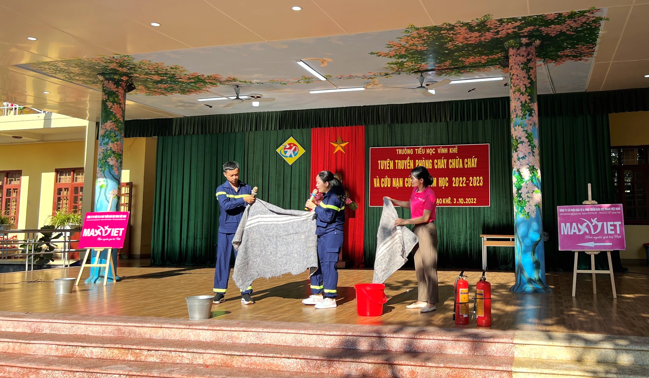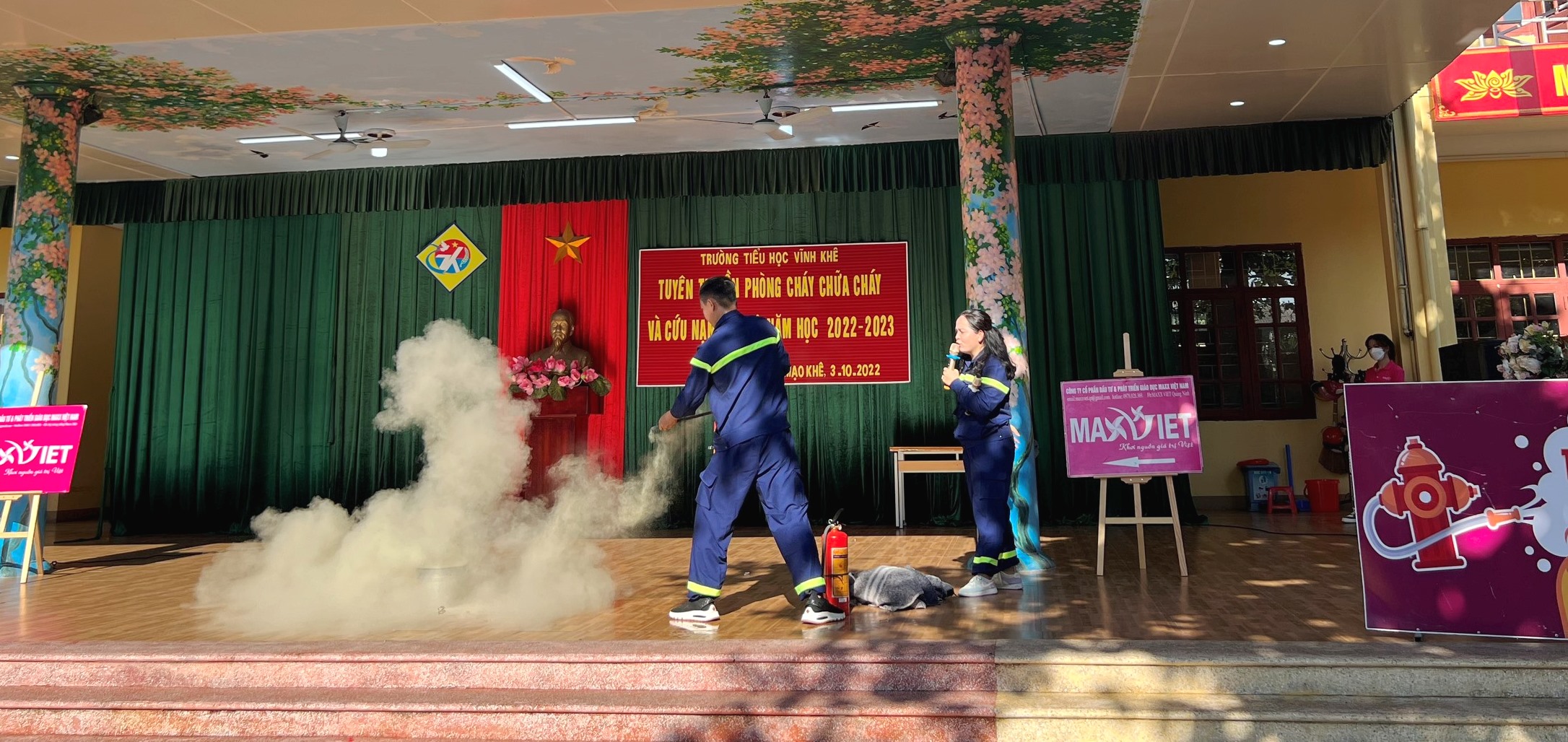 Thực hiện Công văn số 2997/UBND-CATX ngày 22/09/2022 của UBND thị xã Đông Triều về việc tổ chức các hoạt động hưởng ứng Ngày toàn dân phòng cháy chữa cháy 04/10/2022, sáng ngày 03/10 trường Tiểu học Vĩnh Khê phối hợp với công ty Cổ phần và Đầu tư phát triển giáo dục MaxxVietNam tổ chức tuyên truyền phòng cháy chữa cháy, cứu nạn cứu hộ năm học 2022-2023.