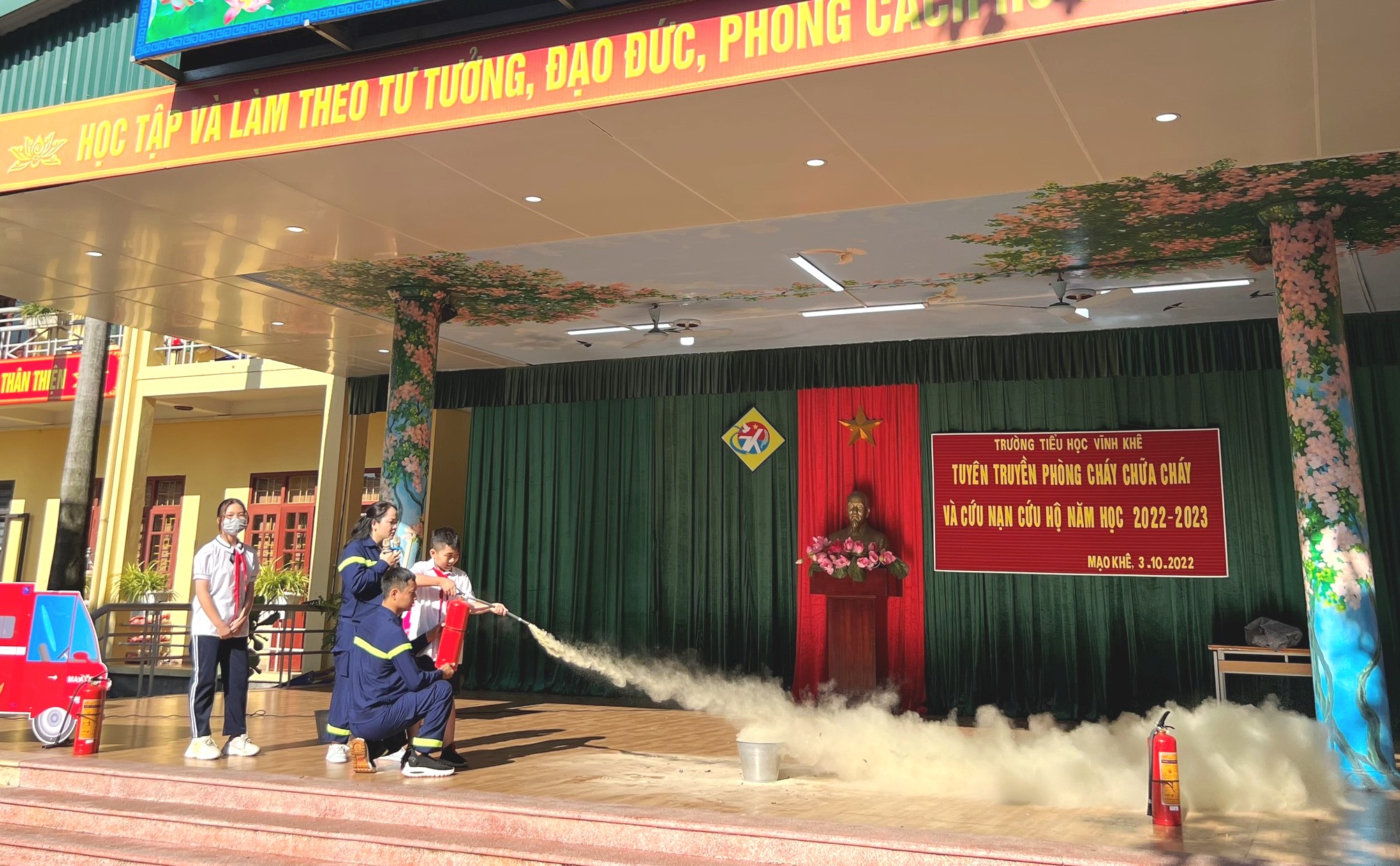 Trường Tiểu học Vĩnh Khê tổ chức tuyên truyền phòng cháy chữa cháy, cứu nạn cứu hộ năm học 2022-2023.