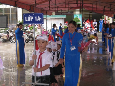 Trường Tiểu học Vĩnh Khê tưng bừng trong Lễ khai giảng năm học mới và đón nhận cờ thi đua của Bộ giáo dục và đào tạo trao tặng đơn vị xuất sắc tiêu biểu.