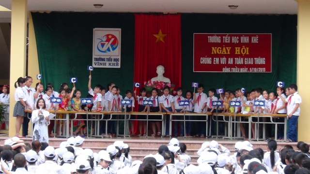 Hưởng ứng phong trào thi đua "Xây dựng trường học thân thiện học sinh tích cực" và Kế hoạch nhiệm vụ năm học 2015 – 2016, được sự đồng ý của Phòng GD&ĐT thị xã Đông Triều, Chi bộ, Ban Giám hiệu cùng sự nhất trí của Hội đồng Sư phạm nhà trường. Sáng ngày 05/10/2015, trường tiểu học Vĩnh Khê tưng bừng tổ chức Ngày hội chúng em với An toàn giao thông năm học 2015 – 2016.Tham gia ngày hội An toàn giao thông có 14 đội đến từ khối 4 và khối 5. Các đội phải trải qua 03 phần thi là Chào hỏi, Kiến thức và Tiểu phẩm. Qua các phần thi các đội đã thể hiện sự hiểu biết về An toàn giao thông, thể hiện các tiểu phẩm rất ý nghĩa để tuyên truyền tới các bạn học sinh trong toàn trường về An toàn giao thông, tham gia giao thông an toàn.