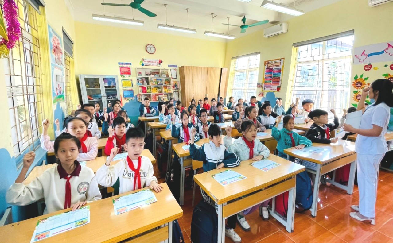 Tuyên truyền phòng chống tác hại thuốc lá trong lớp học.