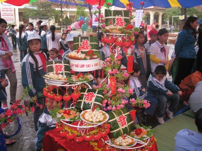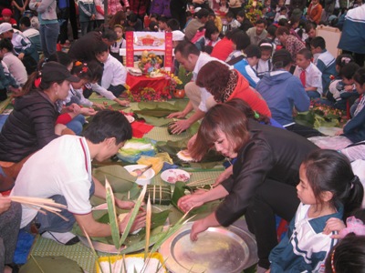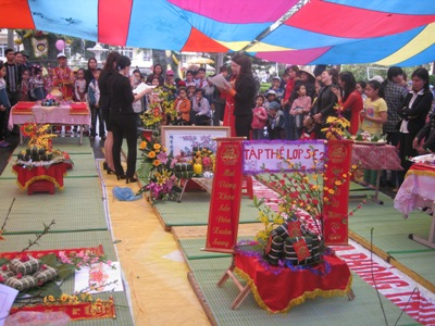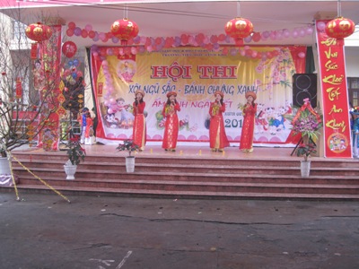 Chiều 4/2/2013, hội thi Gói bánh chưng của học simh và thi Nấu xôi ngũ sắc của giáo viên được tổ chức cùng lúc đã đem lại không khí vui tươi, phấn khởi không chỉ cho thầy trò của nhà trường mà còn thu hút sự tham gia của rất nhiều phụ huynh cũng như nhân dân trên địa bàn. Hội thi được mở đầu với các tiết mục văn nghệ vô cùng độc đáo của các em học sinh. Toàn cảnh hội thi được trang hoàng với cảnh trí mang đậm chất Tết càng làm nức lòng những người có mặt trong hội thi.