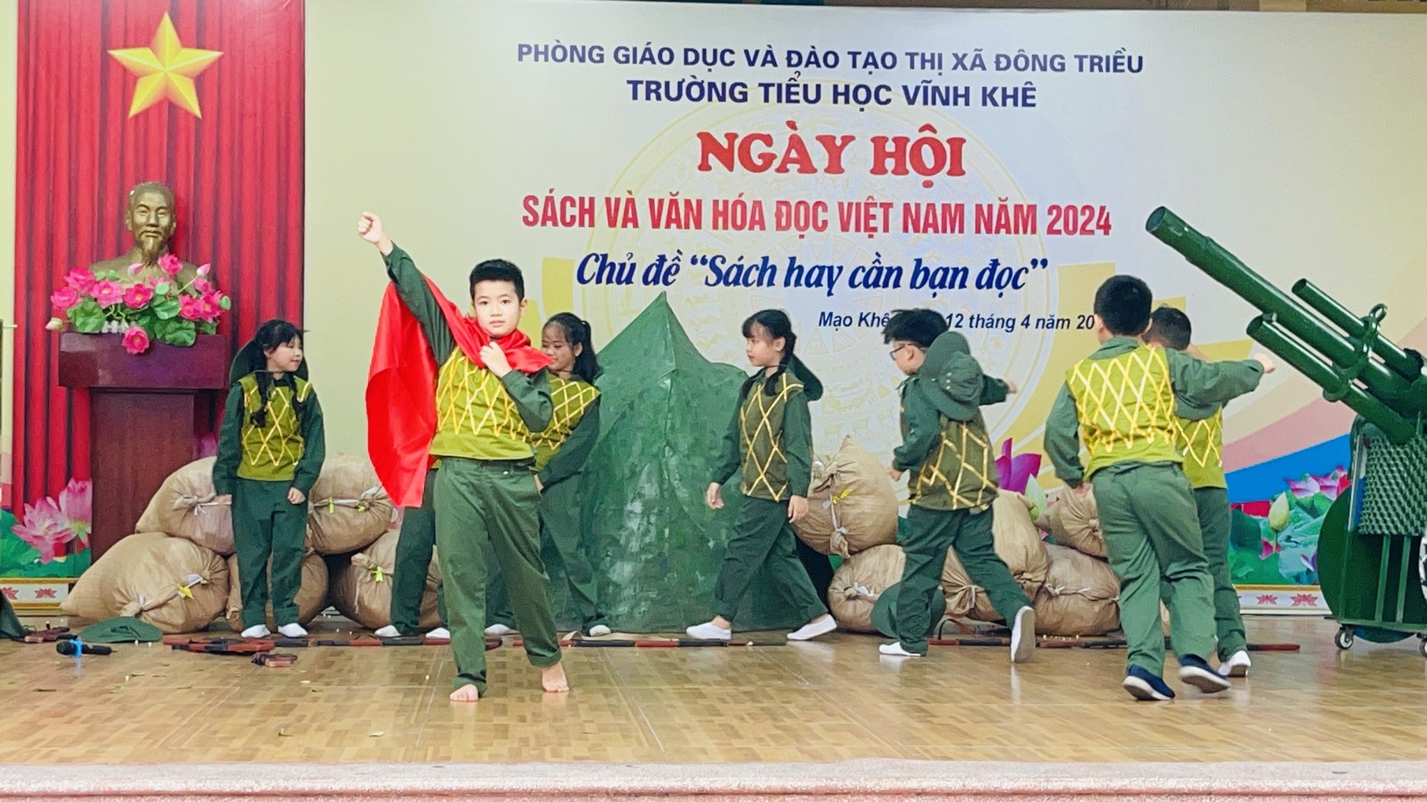 Trong đó phối hợp với Thị đoàn Đông Triều tổ chức Ngày hội "Thiếu nhi vui khỏe" - phát động thi đua chào mừng kỷ niệm 70 năm chiến thắng Điện Biên Phủ, chương trình giới thiệu sách và tham gia cuộc thi "Vẽ tranh của thiếu niên, nhi đồng về chiến thắng Điện Biên Phủ và hình ảnh Điện Biên Phủ hôm nay" do Bộ GD&ĐT phối hợp cùng Trung ương Đoàn tổ chức, có em Nguyễn Tuệ Linh – học sinh lớp 5E7 đạt giải Ba cuộc thi vẽ tranh này. Cũng nhân dịp này học sinh toàn trường còn được xem và tìm hiểu trực tiếp Lễ diễu binh kỉ niệm 70 năm chiến thắng Điện Biên Phủ qua kênh truyền hình VTV1 vào lúc 7h30 phút sáng ngày 07/05/2024.