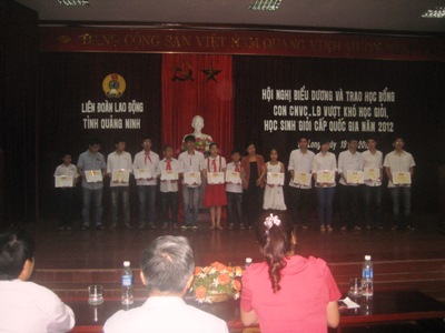 Sáng nay, ngày 19/7/2012, tại “ Hội nghị biểu dương và trao học bổng cho con CNVC, LĐ vượt khó học giỏi, HS giỏi cấp quốc gia năm 2012” do liên đoàn Lao động tỉnh Quảng Ninh tổ chức, Huyện động triều vinh dự có 8 HS giỏi cấp quốc gia và 1 HS nghèo vượt khó được tuyên dương, trong đó trường Tiểu học Vĩnh Khê có 4 HS giỏi cấp quốc gia đó là em: Nguyễn Long Phú – Huy chương Bạc Giao lưu văn toán tuổi thơ; em Bùi Hoàng Nam – Huy chương Bạc giải Tiếng Anh trên Mạng, em Đinh Thế Kiệt huy chương Đồng Giải Tiếng Anh Trên mạng, em Nguyễn Thu Thuận An giải ba cuộc thi Học sinh nói giỏi tiếng Anh Toàn quốc lớp 4. Những thành tích của các em đã thể hiện ý chí phấn đấu, vượt qua trở ngại của hoàn cảnh, điều kiện sống để vươn lên giành kết quả cao trong học tập, trở thành người con ngoan, trò giỏi, đội viên tốt, thực hiện tốt 5 điều Bác Hồ dạy.